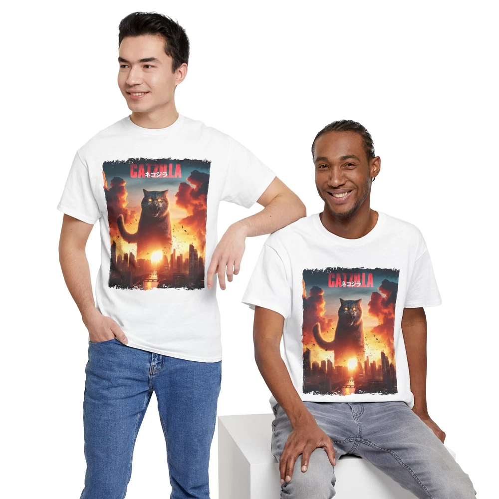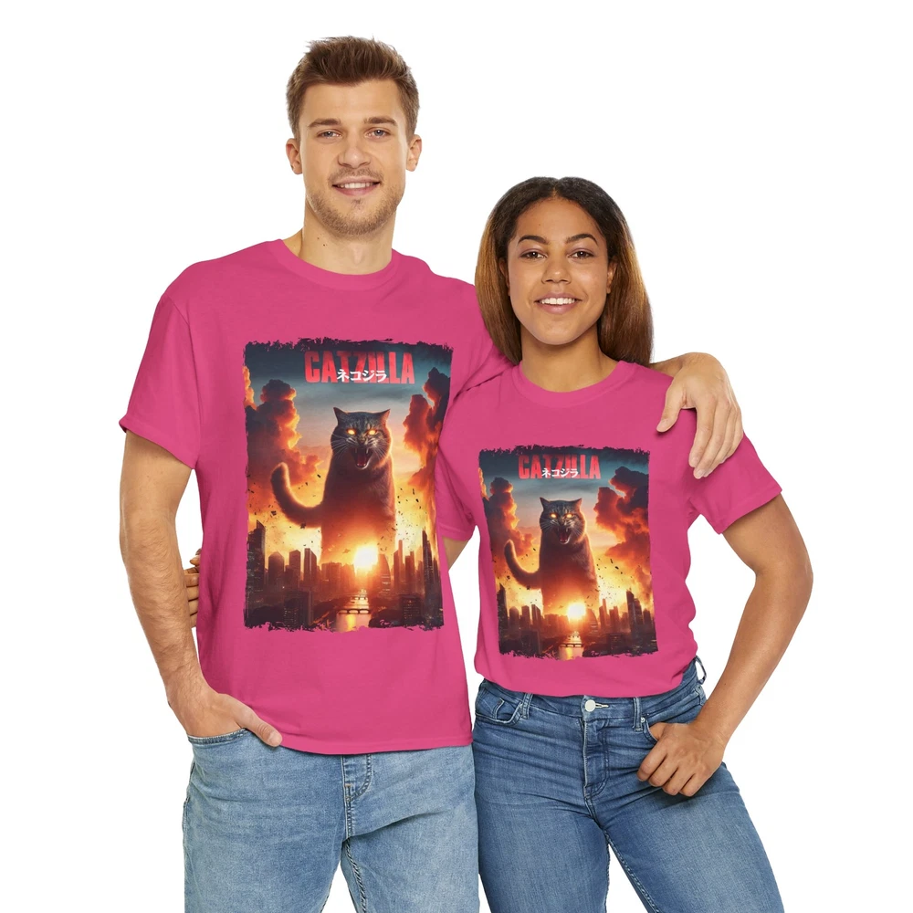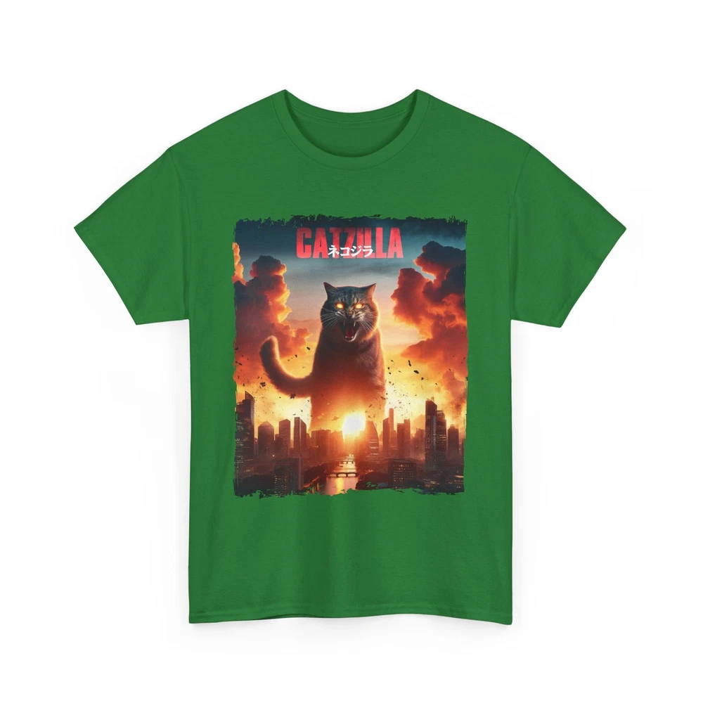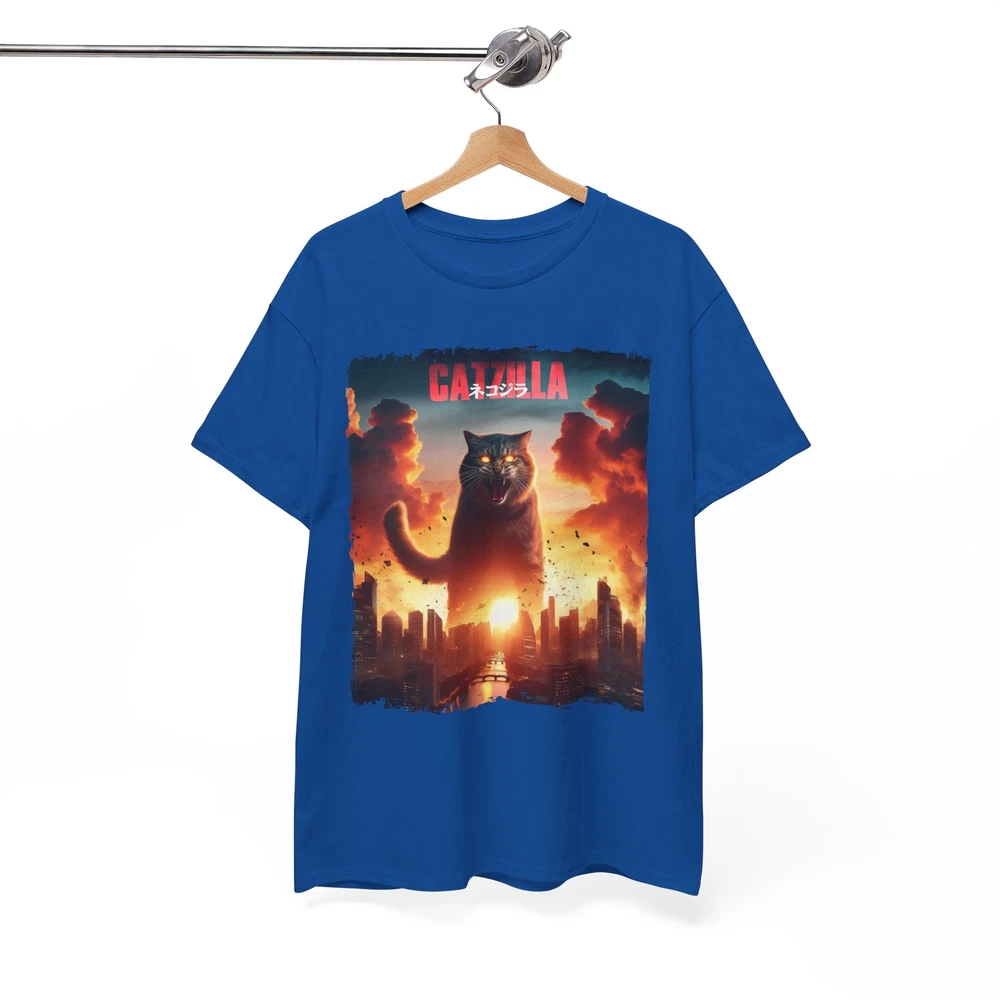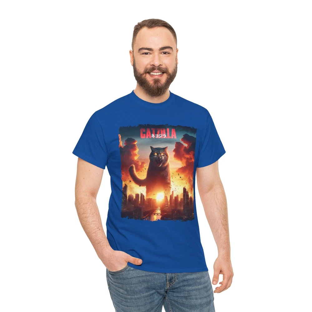IMPERIAL S M L XL 2XL 3XL 4XL 5XL Width, in 18.00 20.00 22.00 24.00 26.00 28.00 30.00 32.00 Length, in 28.00 29.00 30.00 31.00 32.00 33.00 34.00 35.00 Sleeve length (from center back), in 15.10 16.50 18.00 19.50 21.00 22.40 23.70 25.00 Size tolerance, in 1.50 1.50 1.50 1.50 1.50 1.50 1.50 1.50 ------------------------------------------------------------------------------------------------------------------------------------------------------------------------------ METRIC S M L XL 2XL 3XL 4XL 5XL Width, cm 45.72 50.80 55.88 60.96 66.04 71.12 76.20 81.28 Length, cm 71.12 73.66 76.20 78.74 81.28 83.82 86.36 88.90 Sleeve length (from center back), cm 38.35 41.91 45.72 49.53 53.34 56.90 60.20 63.50 Size tolerance, cm 3.81 3.81 3.81 3.81 3.81 3.81 3.81 3.81 ----------------------------------------------------------------------------------------------------------------------------------------------------------------------------- Unleash feline chaos in style with our Catzilla T-Shirt , the ultimate tee for cat lovers who adore epic, funny, and monster-sized designs. Whether you're a fan of urban legends, Japanese kaiju culture, or just love a sassy cat with a giant attitude, this shirt is made for you. Crafted from 100% ethically grown U.S. cotton, this tee offers a durable yet soft medium-weight fabric (5.3 oz/yd² / 180 g/m²) that feels great on the skin and lasts wear after wear. Its classic fit ensures all-day comfort, while the crew neckline delivers a clean, timeless look perfect for both casual hangouts and relaxed weekends. Designed for cat lovers , kaiju fans , and anyone who enjoys bold, funny, and creative graphic tees, this shirt is more than just a novelty ? it's a wardrobe essential. The tear-away label guarantees a scratch-free experience with no irritation, and its Oeko-Tex certification means it's been tested for harmful substances, ensuring safety and peace of mind. Whether you're buying it for yourself or as a gift for a fellow cat fan, our Catzilla tee brings comfort, laughs, and style together in one perfect package. The unisex heavy cotton tee is the basic staple of any wardrobe. It is the foundation upon which casual fashion grows. All it needs is a personalized design to elevate things to profitability. The specially spun fibers provide a smooth surface for premium printing vividity and sharpness. No side seams mean there are no itchy interruptions under the arms. The shoulders have tape for improved durability. .: Made with medium fabric (5.3 oz/yd² (180 g/m²)) consisting of 100% cotton for year-round comfort that is sustainable and highly durable. .: The classic fit of this shirt ensures a comfy, relaxed wear while the crew neckline adds that neat, timeless look that can blend into any occasion, casual or semi-formal. .: The tear-away label means a scratch-free experience with no irritation or discomfort whatsoever. .: Made using 100% US cotton that is ethically grown and harvested. Gildan is also a proud member of the US Cotton Trust Protocol ensuring ethical and sustainable means of production. This blank tee is certified by Oeko-Tex for safety and quality assurance. The classic fit ensures a comfy, relaxed wear, while the crew neckline adds a neat, timeless look suitable for any occasion, casual or semi-formal. The tear-away label provide a scratch-free experience, ensuring no irritation or discomfort. Key Features: - **Shoulder Tape**: Twill tape covers the shoulder seams to stabilize the back of the garment and prevent stretching. - **No Side Seams**: Knitted in one piece using tubular knit, reducing fabric waste and making the garment more attractive. - **Ribbed Knit Collar**: Highly elastic ribbed knit collar helps retain its shape. - **Durable Fabric**: Specially spun fibers create a smooth surface for premium printing vividity and sharpness. Care Instructions: - Machine wash: warm (max 40C or 105F) - Non-chlorine bleach as needed - Tumble dry: medium - Do not iron - Do not dry clean This unisex heavy cotton tee is the foundation of casual fashion, providing a smooth surface for vibrant and sharp prints. Made from ethically grown and harvested cotton. EU representative : Invicticonte LLC, 2105 Vista Oeste St NW Suite E 1187, Albuquerque, NM, 87120, US Product information : Gildan 5000, 2 year warranty in EU and Northern Ireland as per Directive 1999/44/EC Warnings, Hazard : For adults, Made in Nicaragua Care instructions : Machine wash: warm (max 40C or 105F), Non-chlorine: bleach as needed, Tumble dry: medium, Do not iron, Do not dryclean Keywords: catzilla t-shirt, funny cat shirt, kaiju cat tee, cat graphic t-shirt, monster cat shirt, cat lovers gift, Japanese inspired shirt, cotton t-shirt USA, giant cat tee, urban cat design