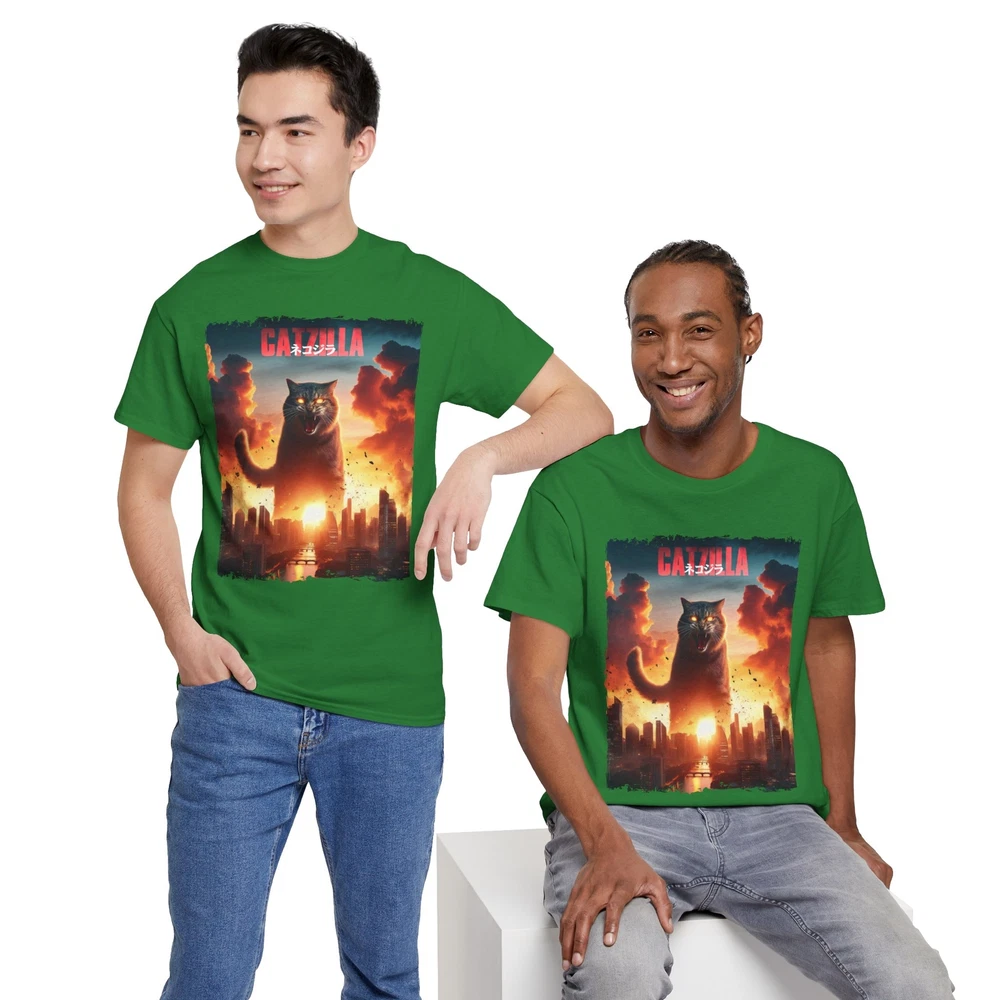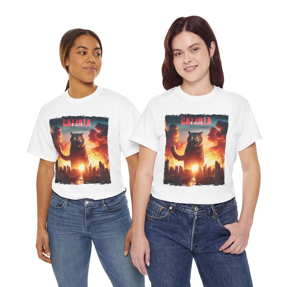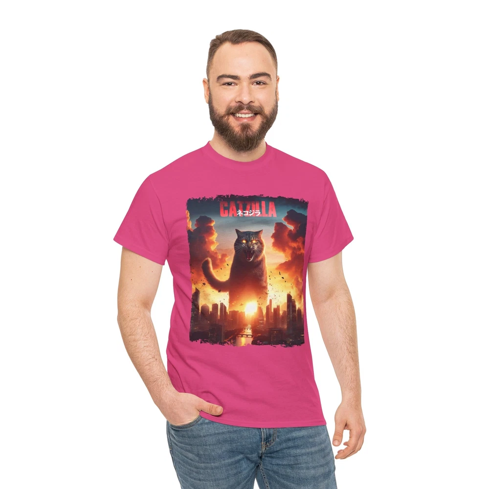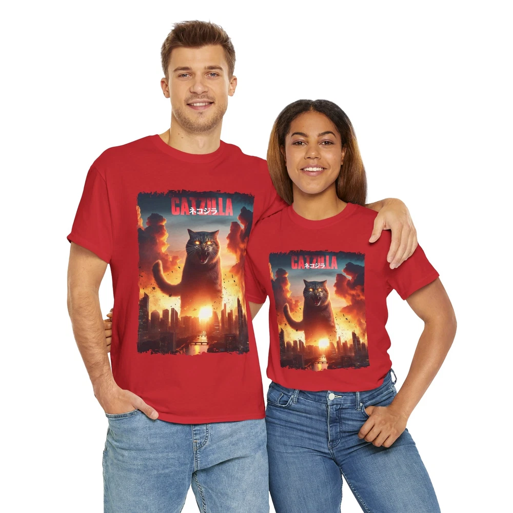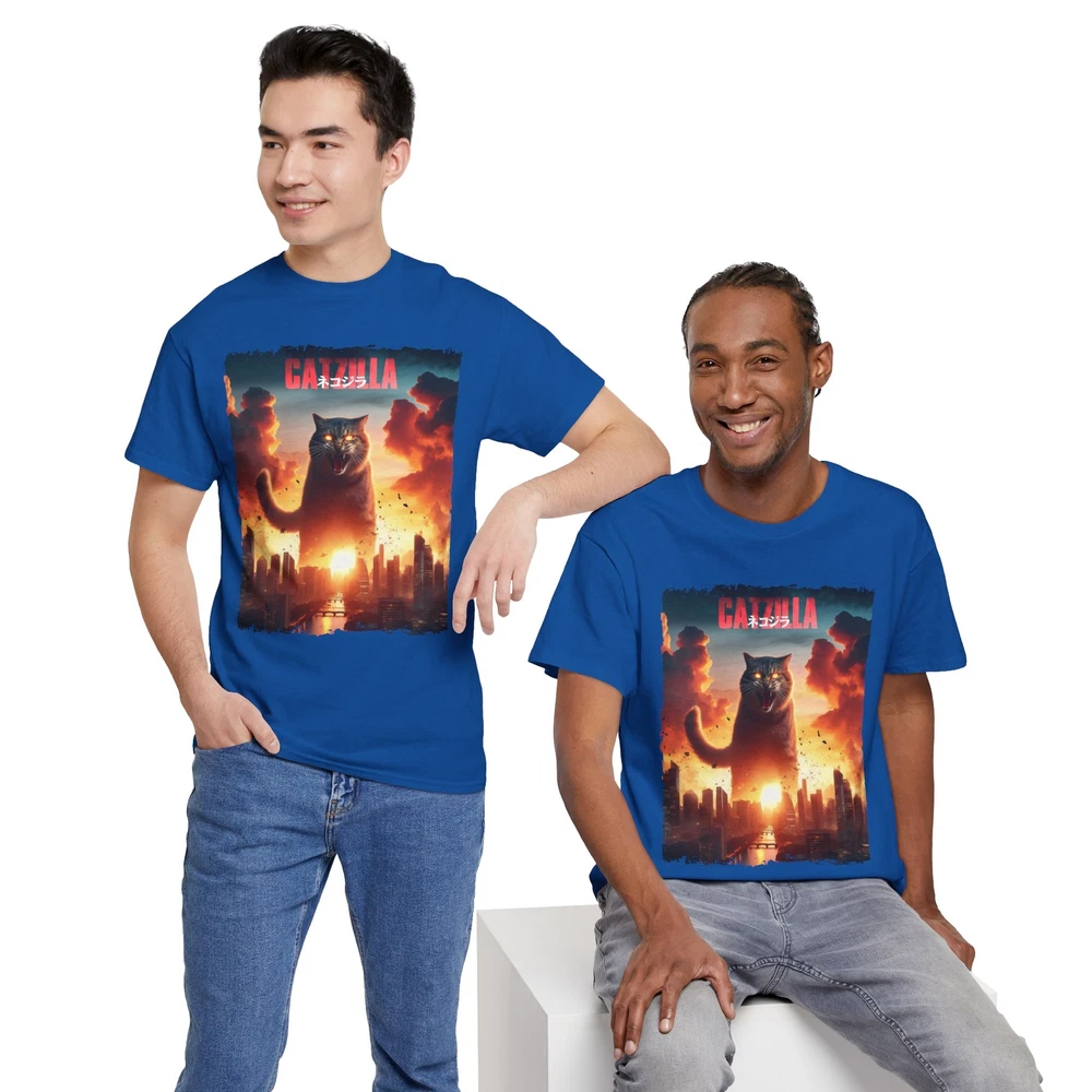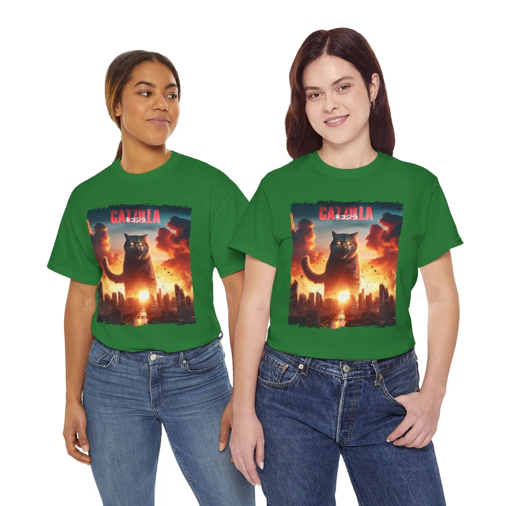 IMPERIAL S M L XL 2XL 3XL 4XL 5XL Width, in 18.00 20.00 22.00 24.00 26.00 28.00 30.00 32.00 Length, in 28.00 29.00 30.00 31.00 32.00 33.00 34.00 35.00 Sleeve length (from center back), in 15.10 16.50 18.00 19.50 21.00 22.40 23.70 25.00 Size tolerance, in 1.50 1.50 1.50 1.50 1.50 1.50 1.50 1.50 ------------------------------------------------------------------------------------------------------------------------------------------------------------------------------ METRIC S M L XL 2XL 3XL 4XL 5XL Width, cm 45.72 50.80 55.88 60.96 66.04 71.12 76.20 81.28 Length, cm 71.12 73.66 76.20 78.74 81.28 83.82 86.36 88.90 Sleeve length (from center back), cm 38.35 41.91 45.72 49.53 53.34 56.90 60.20 63.50 Size tolerance, cm 3.81 3.81 3.81 3.81 3.81 3.81 3.81 3.81 ----------------------------------------------------------------------------------------------------------------------------------------------------------------------------- Unleash feline chaos in style with our Catzilla T-Shirt , the ultimate tee for cat lovers who adore epic, funny, and monster-sized designs. Whether you're a fan of urban legends, Japanese kaiju culture, or just love a sassy cat with a giant attitude, this shirt is made for you. Crafted from 100% ethically grown U.S. cotton, this tee offers a durable yet soft medium-weight fabric (5.3 oz/yd² / 180 g/m²) that feels great on the skin and lasts wear after wear. Its classic fit ensures all-day comfort, while the crew neckline delivers a clean, timeless look perfect for both casual hangouts and relaxed weekends. Designed for cat lovers , kaiju fans , and anyone who enjoys bold, funny, and creative graphic tees, this shirt is more than just a novelty ? it's a wardrobe essential. The tear-away label guarantees a scratch-free experience with no irritation, and its Oeko-Tex certification means it's been tested for harmful substances, ensuring safety and peace of mind. Whether you're buying it for yourself or as a gift for a fellow cat fan, our Catzilla tee brings comfort, laughs, and style together in one perfect package. The unisex heavy cotton tee is the basic staple of any wardrobe. It is the foundation upon which casual fashion grows. All it needs is a personalized design to elevate things to profitability. The specially spun fibers provide a smooth surface for premium printing vividity and sharpness. No side seams mean there are no itchy interruptions under the arms. The shoulders have tape for improved durability. .: Made with medium fabric (5.3 oz/yd² (180 g/m²)) consisting of 100% cotton for year-round comfort that is sustainable and highly durable. .: The classic fit of this shirt ensures a comfy, relaxed wear while the crew neckline adds that neat, timeless look that can blend into any occasion, casual or semi-formal. .: The tear-away label means a scratch-free experience with no irritation or discomfort whatsoever. .: Made using 100% US cotton that is ethically grown and harvested. Gildan is also a proud member of the US Cotton Trust Protocol ensuring ethical and sustainable means of production. This blank tee is certified by Oeko-Tex for safety and quality assurance. The classic fit ensures a comfy, relaxed wear, while the crew neckline adds a neat, timeless look suitable for any occasion, casual or semi-formal. The tear-away label provide a scratch-free experience, ensuring no irritation or discomfort. Key Features: - **Shoulder Tape**: Twill tape covers the shoulder seams to stabilize the back of the garment and prevent stretching. - **No Side Seams**: Knitted in one piece using tubular knit, reducing fabric waste and making the garment more attractive. - **Ribbed Knit Collar**: Highly elastic ribbed knit collar helps retain its shape. - **Durable Fabric**: Specially spun fibers create a smooth surface for premium printing vividity and sharpness. Care Instructions: - Machine wash: warm (max 40C or 105F) - Non-chlorine bleach as needed - Tumble dry: medium - Do not iron - Do not dry clean This unisex heavy cotton tee is the foundation of casual fashion, providing a smooth surface for vibrant and sharp prints. Made from ethically grown and harvested cotton. EU representative : Invicticonte LLC, 2105 Vista Oeste St NW Suite E 1187, Albuquerque, NM, 87120, US Product information : Gildan 5000, 2 year warranty in EU and Northern Ireland as per Directive 1999/44/EC Warnings, Hazard : For adults, Made in Nicaragua Care instructions : Machine wash: warm (max 40C or 105F), Non-chlorine: bleach as needed, Tumble dry: medium, Do not iron, Do not dryclean Keywords: catzilla t-shirt, funny cat shirt, kaiju cat tee, cat graphic t-shirt, monster cat shirt, cat lovers gift, Japanese inspired shirt, cotton t-shirt USA, giant cat tee, urban cat design