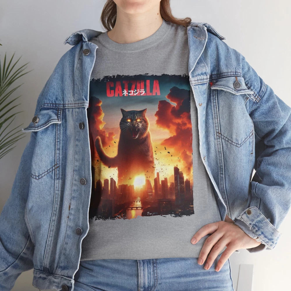 Catzilla T-Shirt - Funny Cat Godzilla Hybrid Graphic Tee for Cat Lovers