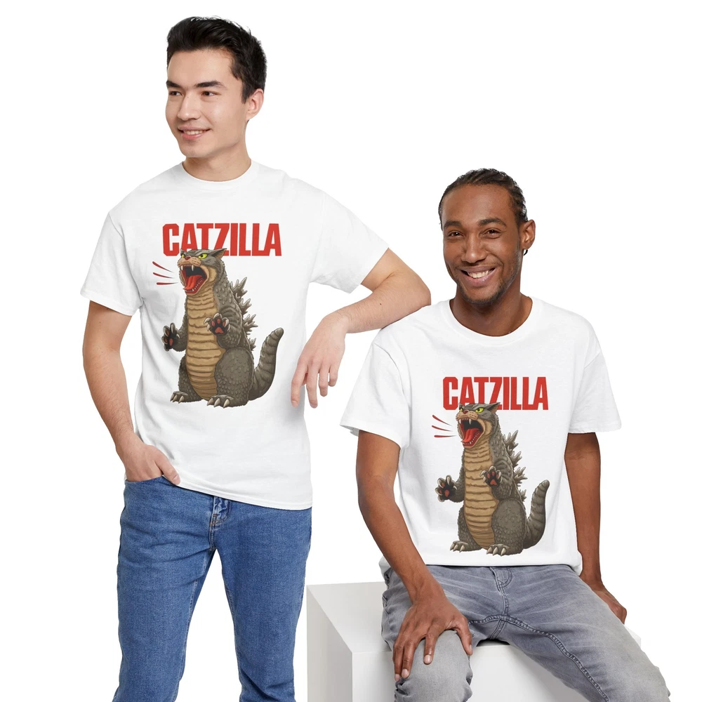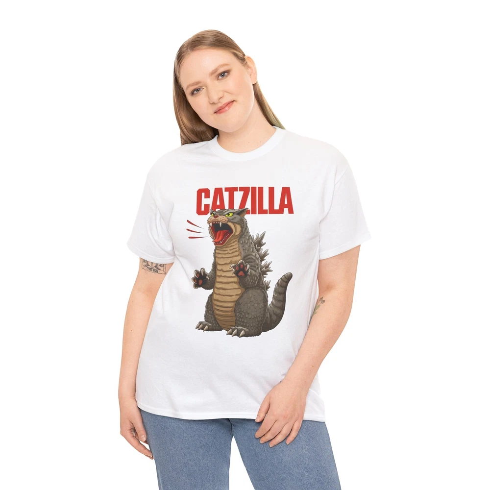 IMPERIAL S M L XL 2XL 3XL 4XL 5XL Width, in 18.00 20.00 22.00 24.00 26.00 28.00 30.00 32.00 Length, in 28.00 29.00 30.00 31.00 32.00 33.00 34.00 35.00 Sleeve length (from center back), in 15.10 16.50 18.00 19.50 21.00 22.40 23.70 25.00 Size tolerance, in 1.50 1.50 1.50 1.50 1.50 1.50 1.50 1.50 ------------------------------------------------------------------------------------------------------------------------------------------------------------------------------ METRIC S M L XL 2XL 3XL 4XL 5XL Width, cm 45.72 50.80 55.88 60.96 66.04 71.12 76.20 81.28 Length, cm 71.12 73.66 76.20 78.74 81.28 83.82 86.36 88.90 Sleeve length (from center back), cm 38.35 41.91 45.72 49.53 53.34 56.90 60.20 63.50 Size tolerance, cm 3.81 3.81 3.81 3.81 3.81 3.81 3.81 3.81 ----------------------------------------------------------------------------------------------------------------------------------------------------------------------------- Unleash feline chaos in style with our Catzilla T-Shirt , the ultimate tee for cat lovers who adore epic, funny, and monster-sized designs. Whether you're a fan of urban legends, Japanese kaiju culture, or just love a sassy cat with a giant attitude, this shirt is made for you. Crafted from 100% ethically grown U.S. cotton, this tee offers a durable yet soft medium-weight fabric (5.3 oz/yd² / 180 g/m²) that feels great on the skin and lasts wear after wear. Its classic fit ensures all-day comfort, while the crew neckline delivers a clean, timeless look perfect for both casual hangouts and relaxed weekends. Designed for cat lovers , kaiju fans , and anyone who enjoys bold, funny, and creative graphic tees, this shirt is more than just a novelty ? it's a wardrobe essential. The tear-away label guarantees a scratch-free experience with no irritation, and its Oeko-Tex certification means it's been tested for harmful substances, ensuring safety and peace of mind. Whether you're buying it for yourself or as a gift for a fellow cat fan, our Catzilla tee brings comfort, laughs, and style together in one perfect package. The unisex heavy cotton tee is the basic staple of any wardrobe. It is the foundation upon which casual fashion grows. All it needs is a personalized design to elevate things to profitability. The specially spun fibers provide a smooth surface for premium printing vividity and sharpness. No side seams mean there are no itchy interruptions under the arms. The shoulders have tape for improved durability. .: Made with medium fabric (5.3 oz/yd² (180 g/m²)) consisting of 100% cotton for year-round comfort that is sustainable and highly durable. .: The classic fit of this shirt ensures a comfy, relaxed wear while the crew neckline adds that neat, timeless look that can blend into any occasion, casual or semi-formal. .: The tear-away label means a scratch-free experience with no irritation or discomfort whatsoever. .: Made using 100% US cotton that is ethically grown and harvested. Gildan is also a proud member of the US Cotton Trust Protocol ensuring ethical and sustainable means of production. This blank tee is certified by Oeko-Tex for safety and quality assurance. The classic fit ensures a comfy, relaxed wear, while the crew neckline adds a neat, timeless look suitable for any occasion, casual or semi-formal. The tear-away label provide a scratch-free experience, ensuring no irritation or discomfort. Key Features: - **Shoulder Tape**: Twill tape covers the shoulder seams to stabilize the back of the garment and prevent stretching. - **No Side Seams**: Knitted in one piece using tubular knit, reducing fabric waste and making the garment more attractive. - **Ribbed Knit Collar**: Highly elastic ribbed knit collar helps retain its shape. - **Durable Fabric**: Specially spun fibers create a smooth surface for premium printing vividity and sharpness. Care Instructions: - Machine wash: warm (max 40C or 105F) - Non-chlorine bleach as needed - Tumble dry: medium - Do not iron - Do not dry clean This unisex heavy cotton tee is the foundation of casual fashion, providing a smooth surface for vibrant and sharp prints. Made from ethically grown and harvested cotton. EU representative : Invicticonte LLC, 2105 Vista Oeste St NW Suite E 1187, Albuquerque, NM, 87120, US Product information : Gildan 5000, 2 year warranty in EU and Northern Ireland as per Directive 1999/44/EC Warnings, Hazard : For adults, Made in Nicaragua Care instructions : Machine wash: warm (max 40C or 105F), Non-chlorine: bleach as needed, Tumble dry: medium, Do not iron, Do not dryclean Keywords: catzilla t-shirt, funny cat shirt, kaiju cat tee, cat graphic t-shirt, monster cat shirt, cat lovers gift, Japanese inspired shirt, cotton t-shirt USA, giant cat tee, urban cat design