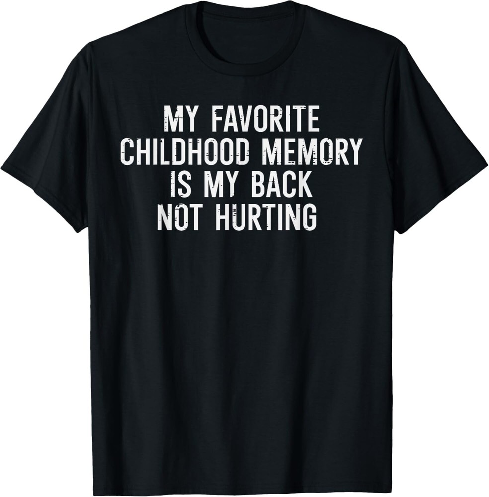 Childhood Memory Back Not Hurting Funny Saying Women Men T-Shirt FREE SHIPPING! FAST DELIVERY! DOMESTIC SHIPPING! Delivery from 3 to 7 business days! Features and further details Stay classy and unique with custom cotton and a pretty thick t-shirt. The print on demand t-shirt is designed with a crew neckline, short sleeves for better comfort, taped neck and shoulders, and double-needle sleeves for enhanced durability. It?s a good choice for both men and women. Material: 5.3 oz/yd², Dark Heather, Graphite Heather, Heather Navy, Heather Red, Tweed (50% cotton, 50% polyester); Sport Grey, Antique Irish Green, Antique Orange, Antique Sapphire (90% Cotton/10% polyester), Ash (99% Cotton/ 1% Polyester), All Others (100% cotton). Classic, unisex fit - Comfortable to wear and suitable for anyone to wear. Non-stitched, classic width, rib collar. Printing technique: Direct to Garment. Color: Ash, Black, Charcoal, Dark Chocolate, Dark Heather, Forest Green, Gold, Ice Grey, Irish Green, Kiwi, Light Blue, Light Pink, Maroon, Military Green, Navy, Orange, Purple, Red, Royal, Sand, Sport Grey, Tropical Blue, Turf Green, White, Antique Irish Green, Antique Orange, Antique Sapphire, Azalea, Cardinal Red, Carolina Blue, Cobalt, Coral Silk, Cornsilk, Daisy, Graphite Heather, Heather Navy, Heather Red, Heliconia, Lime, Natural, Sapphire, Tweed. Size: S, M, L, XL, 2XL, 3XL, 4XL, 5XL. Blank product: Gildan 5000 Shipping We shipping from US for all orders! We offer FREE shipping on all orders! We ship within Three business days of payment, usually sooner. We use a selection of shipping services such as UPS, FedEx, USPS etc. We only ship to the lower 48 states, no APO/FPO addresses or PO Boxes allowed. Local pickups and combined shipping options are not provided at this time. Feedback Customer satisfaction is very important to us. If you have any problem with your order, please contact us and we will do our best to make you satisfied. Contact Us If you have any queries, please contact us via ebay. We usually respond within 24 hours on weekdays. Please visit our store to check out other items for sale! Thank you for shopping at our store.