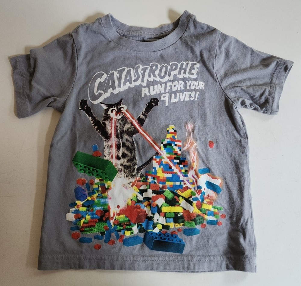 This Children's Place T-shirt features an adorable cat theme, with a playful twist. With its gray color and comfortable 3T size. JS74...