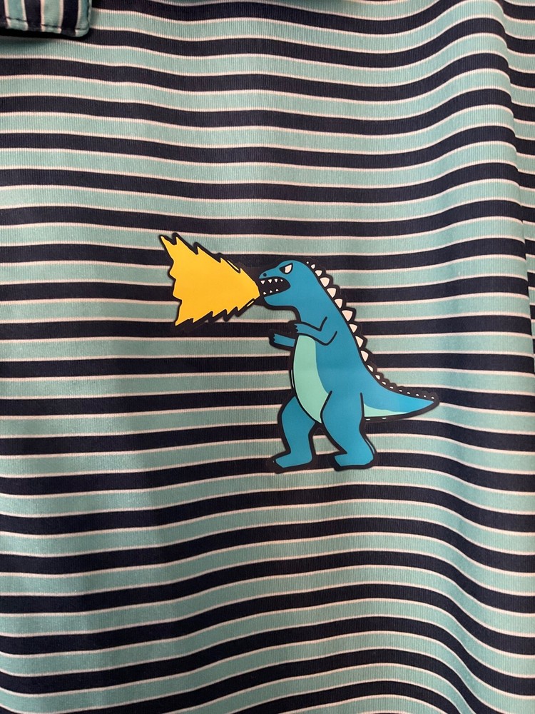 This polo is seriously awesome! The stretchy fabric makes it super comfortable and the Godzilla design is so cool. Fits perfectly and looks brand new.