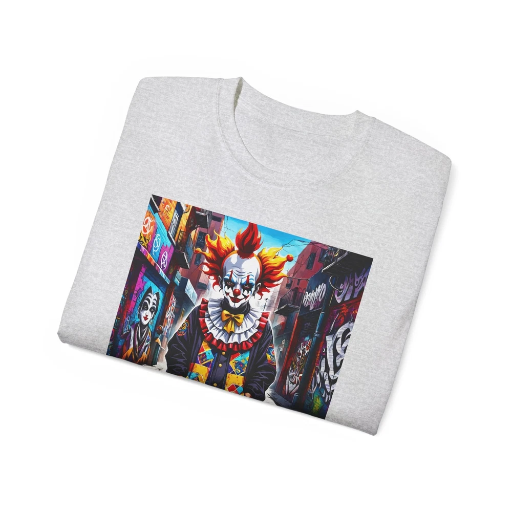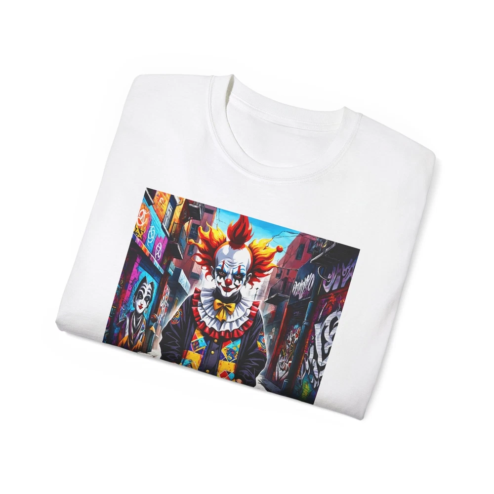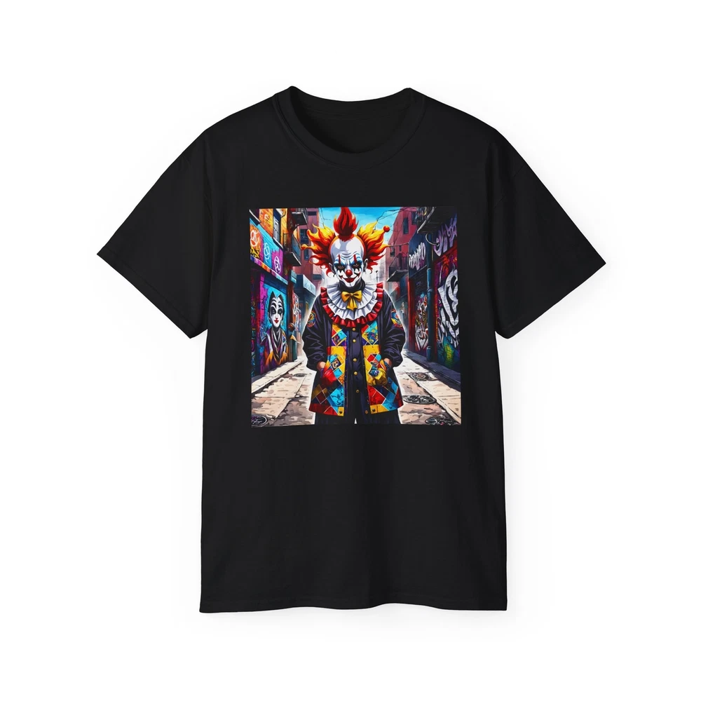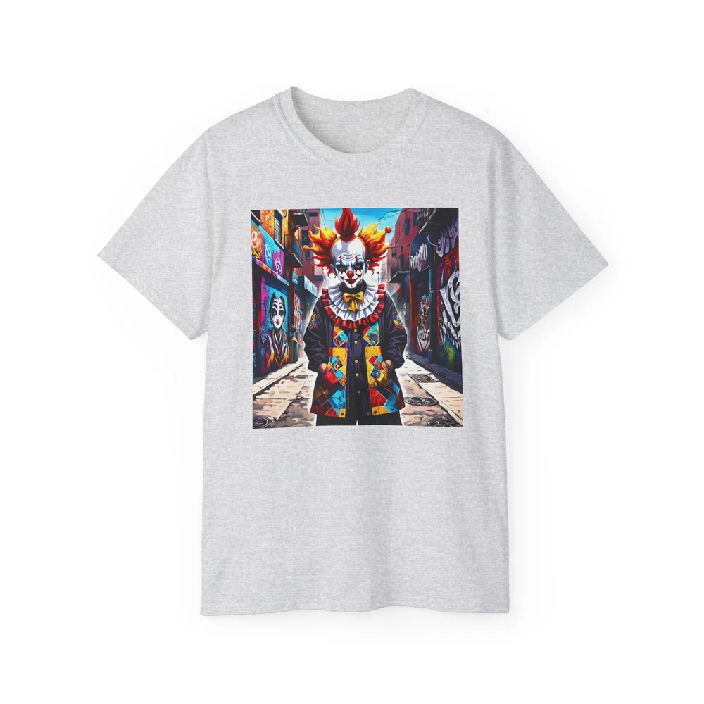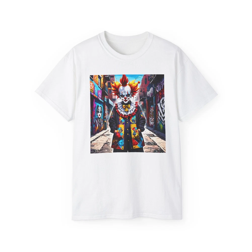 A fun and quirky clown design adorns this unisex ultra cotton tee, giving off a playful and whimsical vibe. Perfect for those who love unique and colorful clothing. Ideal for casual wear, costume parties, Halloween, and circus-themed events. Product features - Unisex fit for comfortable wear - Various fabric blends for different color options - Environmentally-friendly manufactured cotton for a thicker vintage feel - Classic crew neckline and versatile fit - Certified by Oeko-Tex for safety and quality assurance Care instructions - Machine wash: cold (max 30C or 90F) - Non-chlorine: bleach as needed - Do not tumble dry - Do not iron - Do not dryclean
