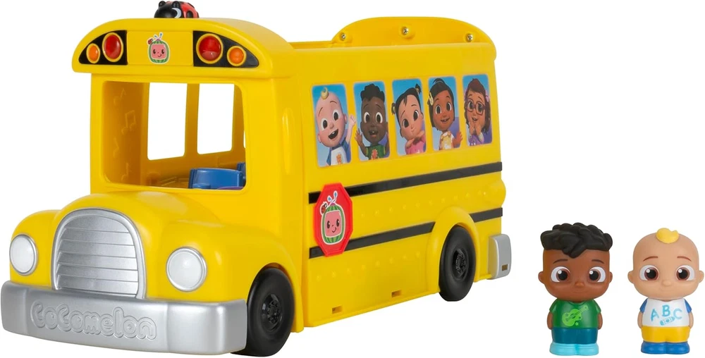 2-In-1 SCHOOL BUS: The CoComelon Transforming School Time Bus is a unique 2-in-1 bus that transforms into a school 3 FAVORITE SONGS: This toy features fan-favorite song clips like "Wheels on the Bus," "First Day of School," and the "ABC Song” LIGHTS AND SOUNDS: Press the ladybug to activate lights and sounds 6 AREAS TO PLAY: Open the toy bus and get ready for school – explore the garden with Cody, push JJ on the swings, play on the playground, and more MORE TO COLLECT: Experience the excitement of CoComelon at home with a wide selection of toys, plush, instruments, and more Join JJ and Cody on a fun day at school with the CoComelon Transforming School Time Bus! This 2-in-1 transforming bus reveals 6 play areas, including a classroom and playground! Pull down the right side of the bus and slide out to expand the playset. Explore school themes with JJ and Cody in a whole new way! From the classroom to the playground, discover vegetables growing in the garden, play on the merry-go-round with JJ, or nap on the cot that transforms into a chalkboard! Press the ladybug on the bus to activate lights and 3 fan-favorite songs - "Wheels on the Bus," "First Day of School," and the "ABC Song." The CoComelon Transforming School Time Bus playset offers endless possibilities for play! Experience the excitement of CoComelon at home with a wide selection of toys, plush, instruments, and more!
