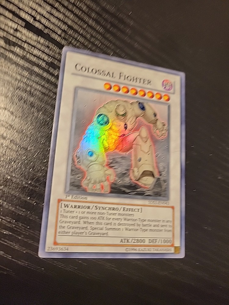 The product is a Super Rare 1st Edition Yu-Gi-Oh! TCG card named Colossal Fighter. It has the card number 5DS1-EN043 and is in Near Mint condition. This highly sought-after collectible card features the mighty Colossal Fighter character and is a great addition to any Yu-Gi-Oh! card collection.