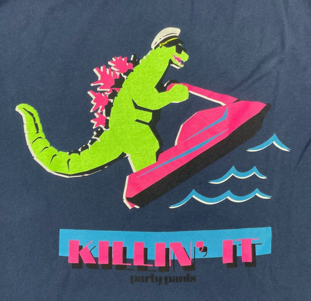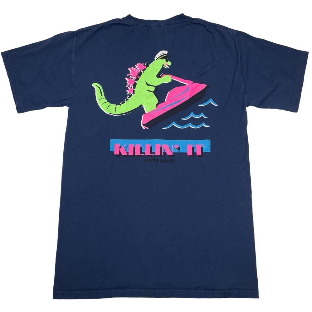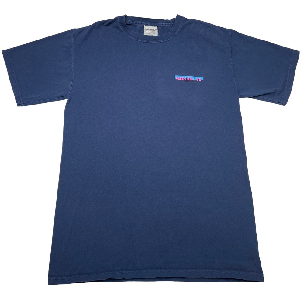 ComfortWash Navy Blue T-Shirt Men's S Alligator Jet Ski Graphic Tee "Killin It" Back print. Dino on Jet ski. 100% Ring Spun Cotton Machine washable Size Small. Check the approximate measurements, double where necessary: Flat armpit to armpit: 18" Length: 26.5" Good preowned condition. Please see photos as they are part of the description. Thank you for your interest.