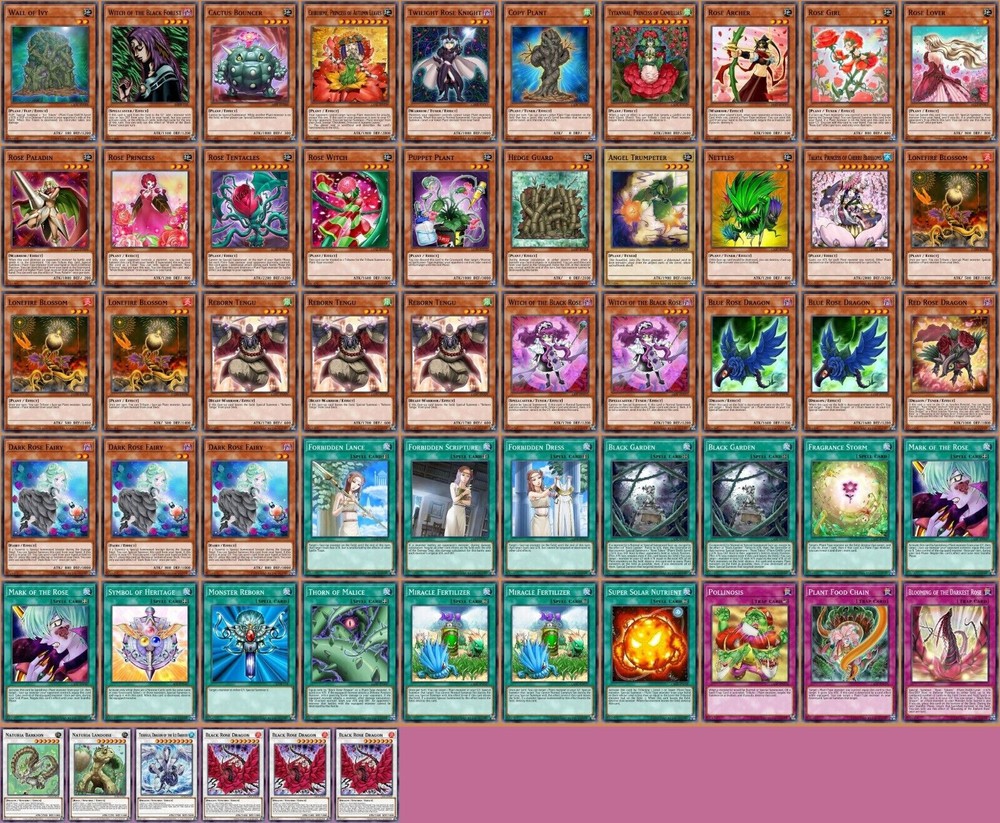 Hello all I am a New Ebay Seller!!! I am a Female Yugioh & Magic Collector!!! Happy Bidding!!! A bonus for ordering you will also Get a Free Holo Card from my collection. It maybe Super Rare, Ultra Rare, or SECRET Rare!!! Picture may have been edited due to Inventory Changes Please read description Below Item for sale is: Main Deck (50) 1 - Blooming of the Darkest Rose 1 - Plant Food Chain 1 - Pollinosis 1 - Super Solar Nutrient 2 - Miracle Fertilizer 1 - Thorn of Malice 1 - Monster Reborn 1 - Symbol of Heritage 2 - Mark of the Rose 1 - Fragrance Storm 2 - Black Garden 1 - Forbidden Dress 1 - Forbidden Scripture 1 - Forbidden Lance 3 - Dark Rose Fairy 1 - Red Rose Dragon 2 - Blue Rose Dragon 2 - Witch of the Black Rose 3 - Reborn Tengu 3 - Lonefire Blossom 1 - Talaya, Princess of Cherry Blossoms 1 - Nettles 1 - Angel Trumpeter 1 - Hedge Guard 1 - Puppet Plant 1 - Rose Witch 1 - Rose Tentacles 1 - Rose Princess 1 - Rose Paladin 1 - Rose Lover 1 - Rose Girl 1 - Rose Archer 1 - Tytannial, Princess of Camellias 1 - Copy Plant 1 - Twilight Rose Knight 1 - Chirubimé, Princess of Autumn Leaves 1 - Cactus Bouncer 1 - Witch of the Black Forest 1 - Wall of Ivy Extra Deck (6) 3 - Black Rose Dragon 1 - Trishula, Dragon of the Ice Barrier 1 - Naturia Landoise 1 - Naturia Barkion