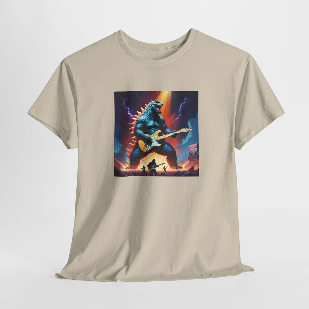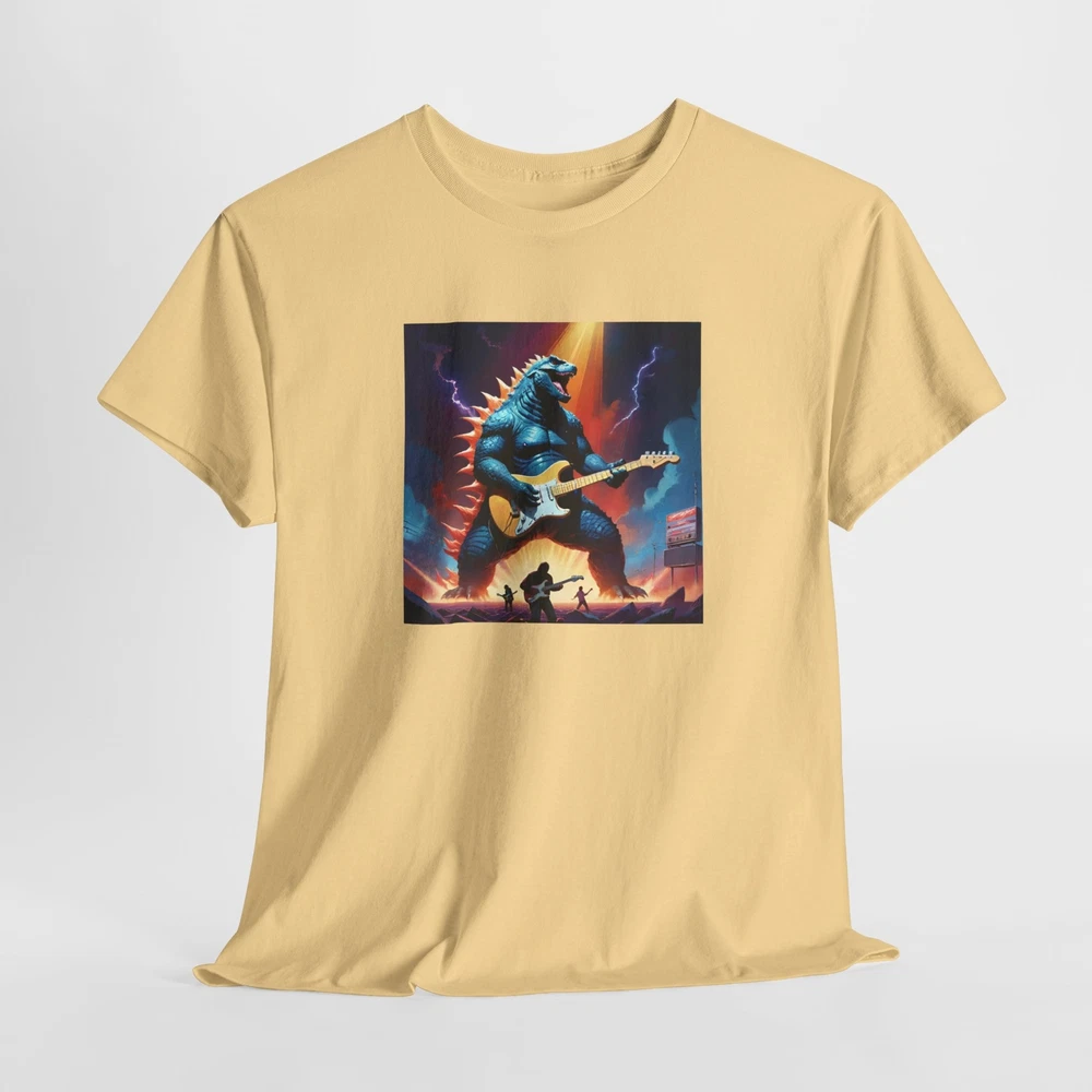 Cool Graphic Vintage Godzilla tee, unisex monster band shirt The unisex heavy cotton tee is the basic staple of any wardrobe. It is the foundation upon which casual fashion grows. The specially spun fibers provide a smooth surface for premium printing vividity and sharpness. No side seams mean there are no itchy interruptions under the arms. The shoulders have tape for improved durability. .: Made with medium fabric (5.3 oz/yd² (180 g/m²)) consisting of 100% cotton for year-round comfort that is sustainable and highly durable. .: The classic fit of this shirt ensures a comfy, relaxed wear while the crew neckline adds that neat, timeless look that can blend into any occasion, casual or semi-formal. .: The tear-away label means a scratch-free experience with no irritation or discomfort whatsoever. .: Made using 100% US cotton that is ethically grown and harvested. Gildan is also a proud member of the US Cotton Trust Protocol ensuring ethical and sustainable means of production. This blank tee is certified by Oeko-Tex for safety and quality assurance.