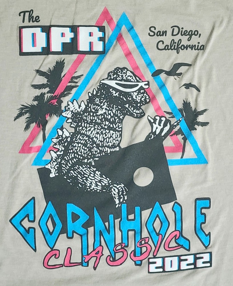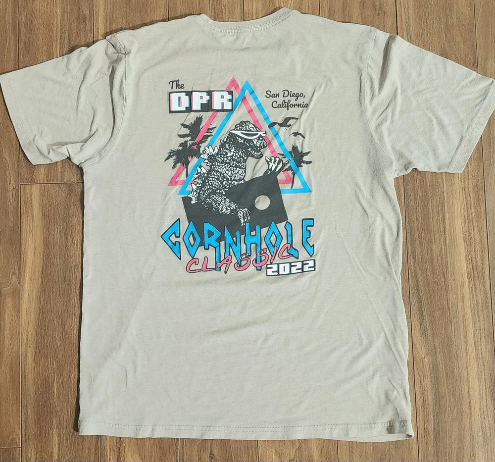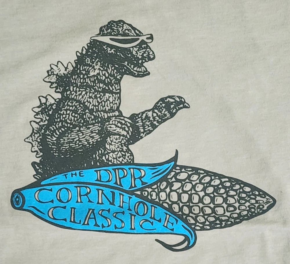 Cornhole Game T-Shirt Sz XL DPR 2022 Classic Competition Tee Godzilla. Size tag is missing but fits like an XL. See all photos for accurate measurements....