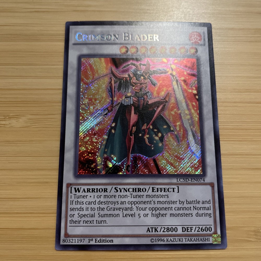 Hello! This listing is for the following card(s): 1x Crimson Blader Secret Rare 1st Edition NM Please message me with any questions, thanks!