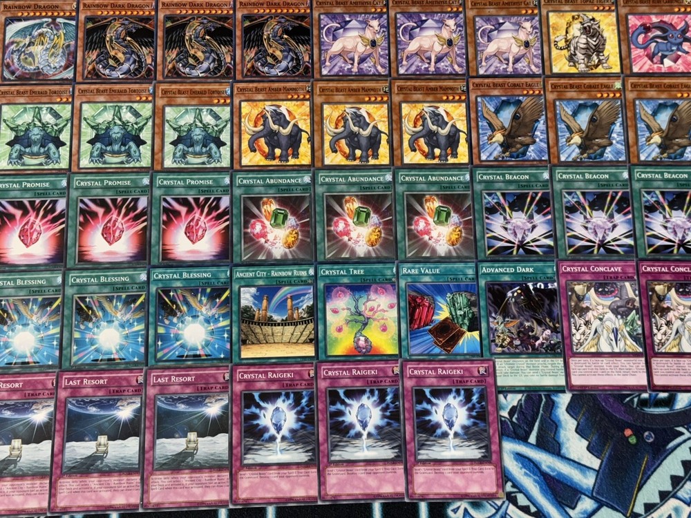 This is a Yu-Gi-Oh! TCG player-built deck featuring the Crystal Beast archetype and featuring Jesse Anderson as the character. The deck is in English and was manufactured in 2024 in the United States. It is suitable for ages 13 and up and is part of the - Yugi - set. The deck is perfect for collectors and fans of the Yu-Gi-Oh! TCG game. Card conditions may vary from NM to HP as some cards are newer and some are older