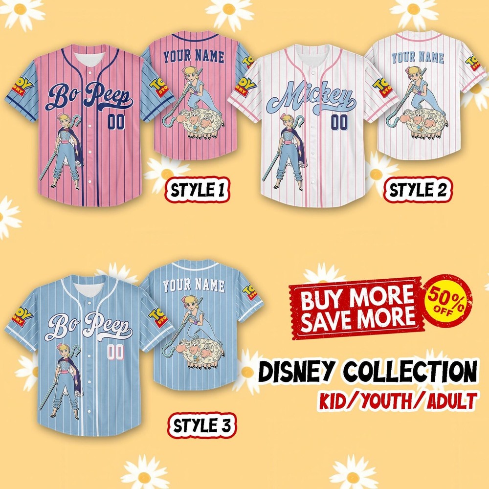 Custom Bo Peep Toy Story Disney Baseball Jersey for Kids Men Women Team Gift