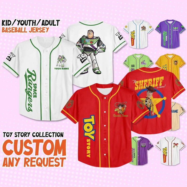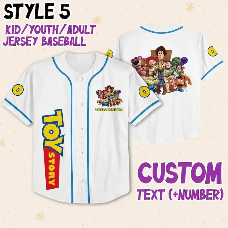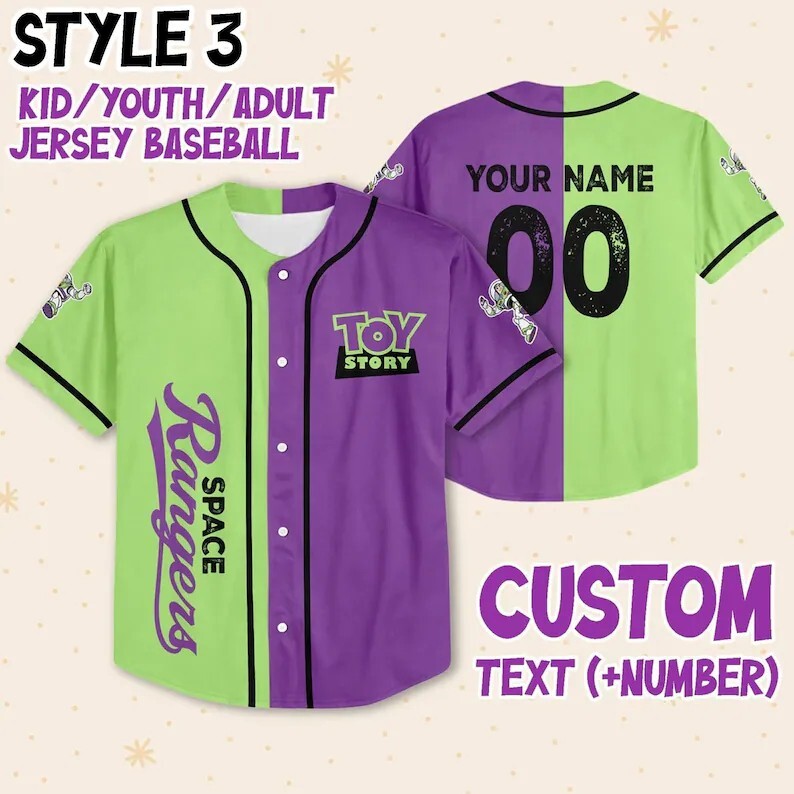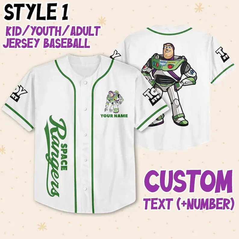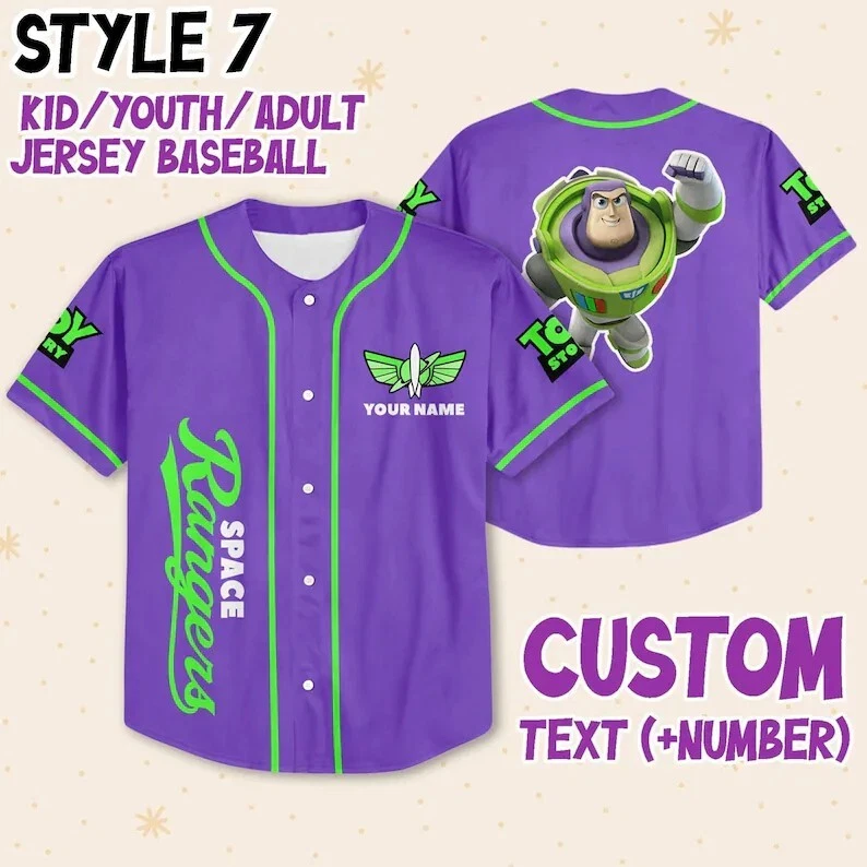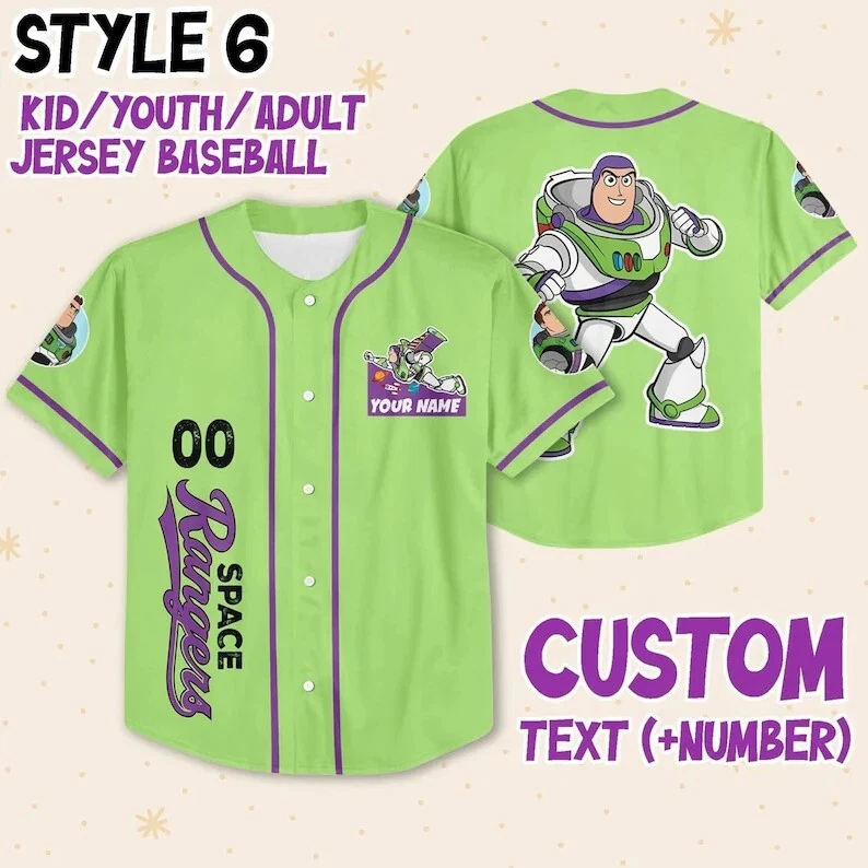Custom Buzz Lightyear Toy Story Baseball Jersey for Kids & Adults Sizes S-5XL