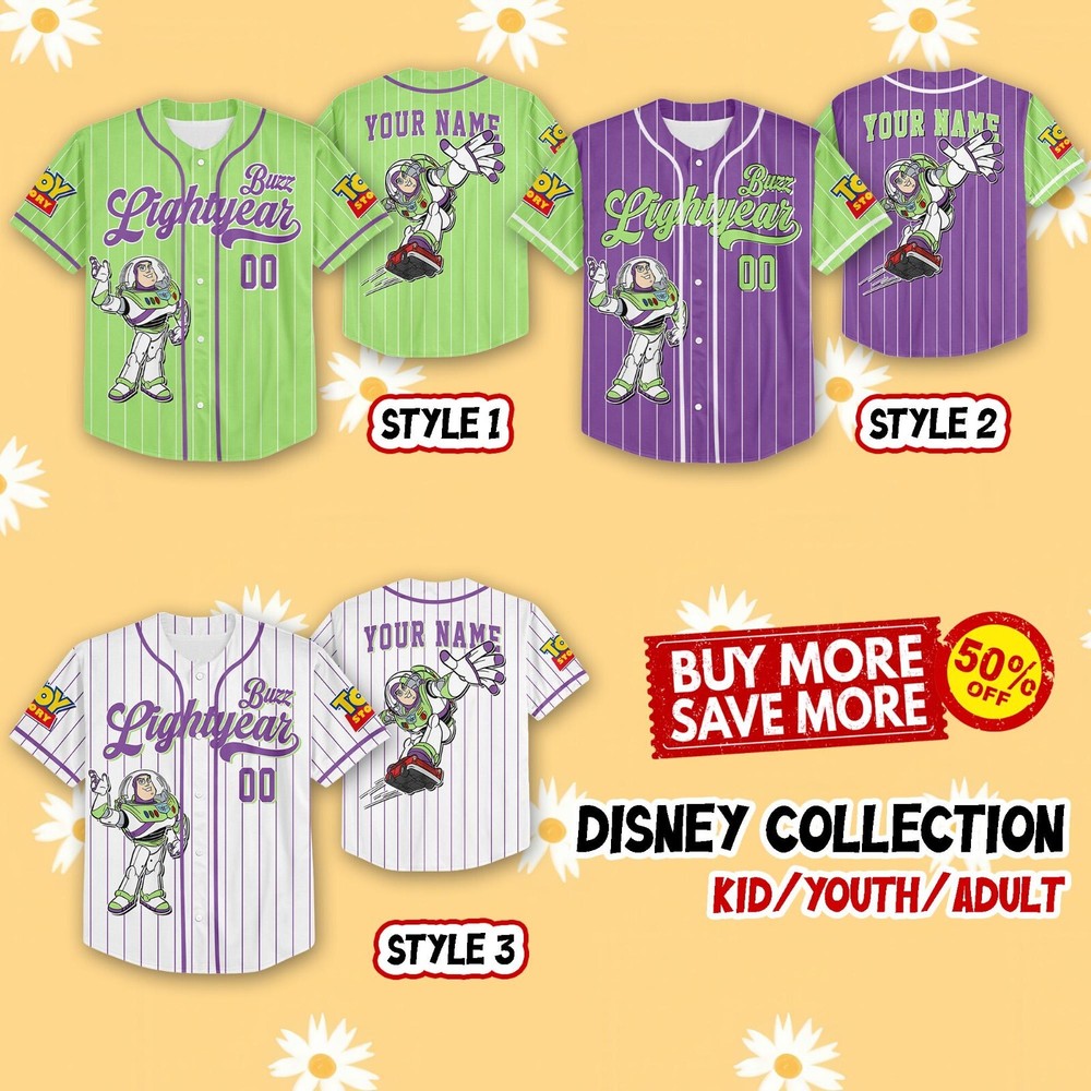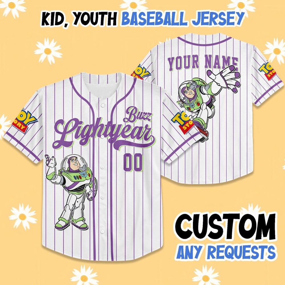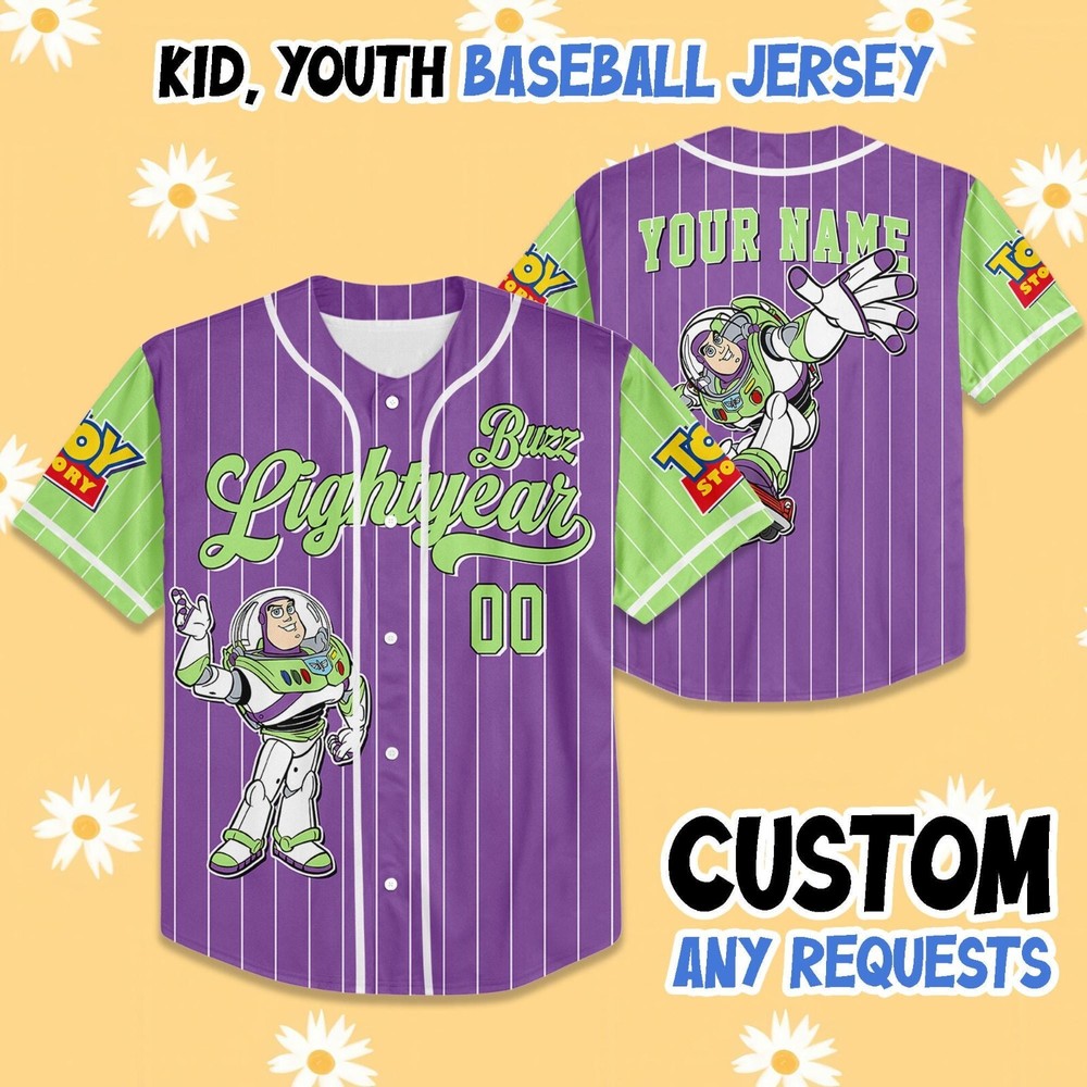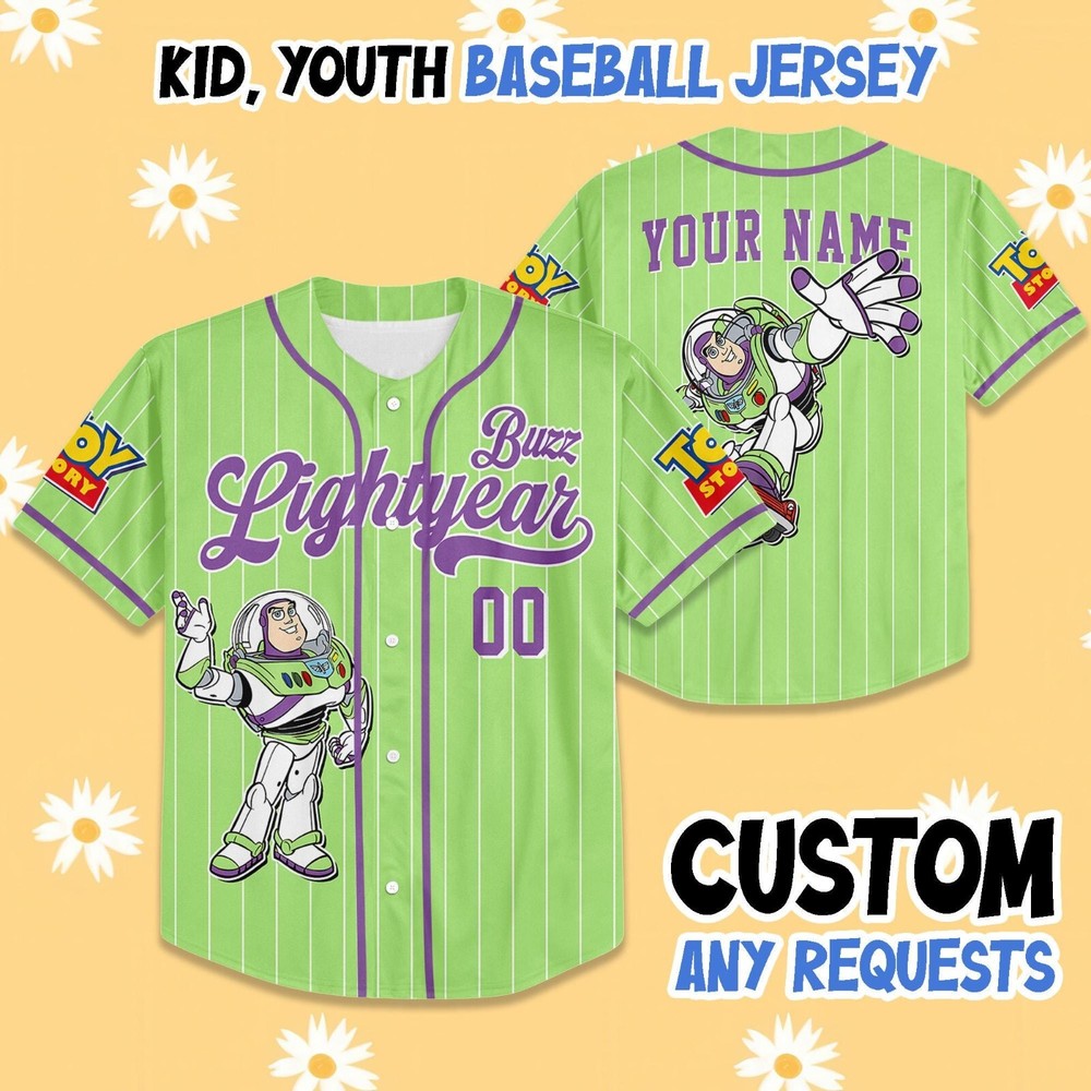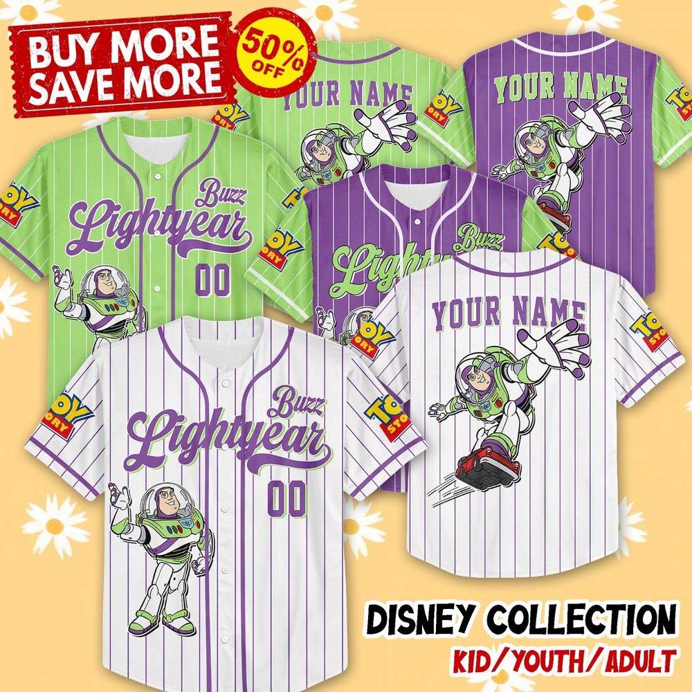 Custom Buzz Lightyear Toy Story Baseball Jersey for Kids & Adults Sizes S-5XL