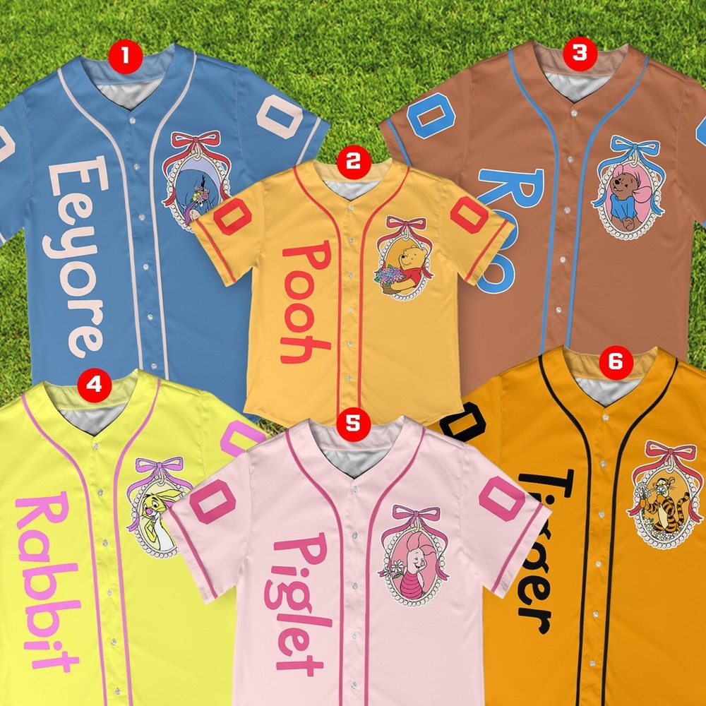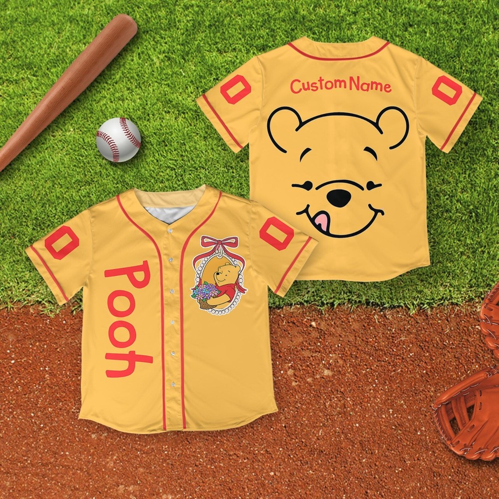 Custom Disney Pooh Bear Baseball Jersey for Kids and Adults