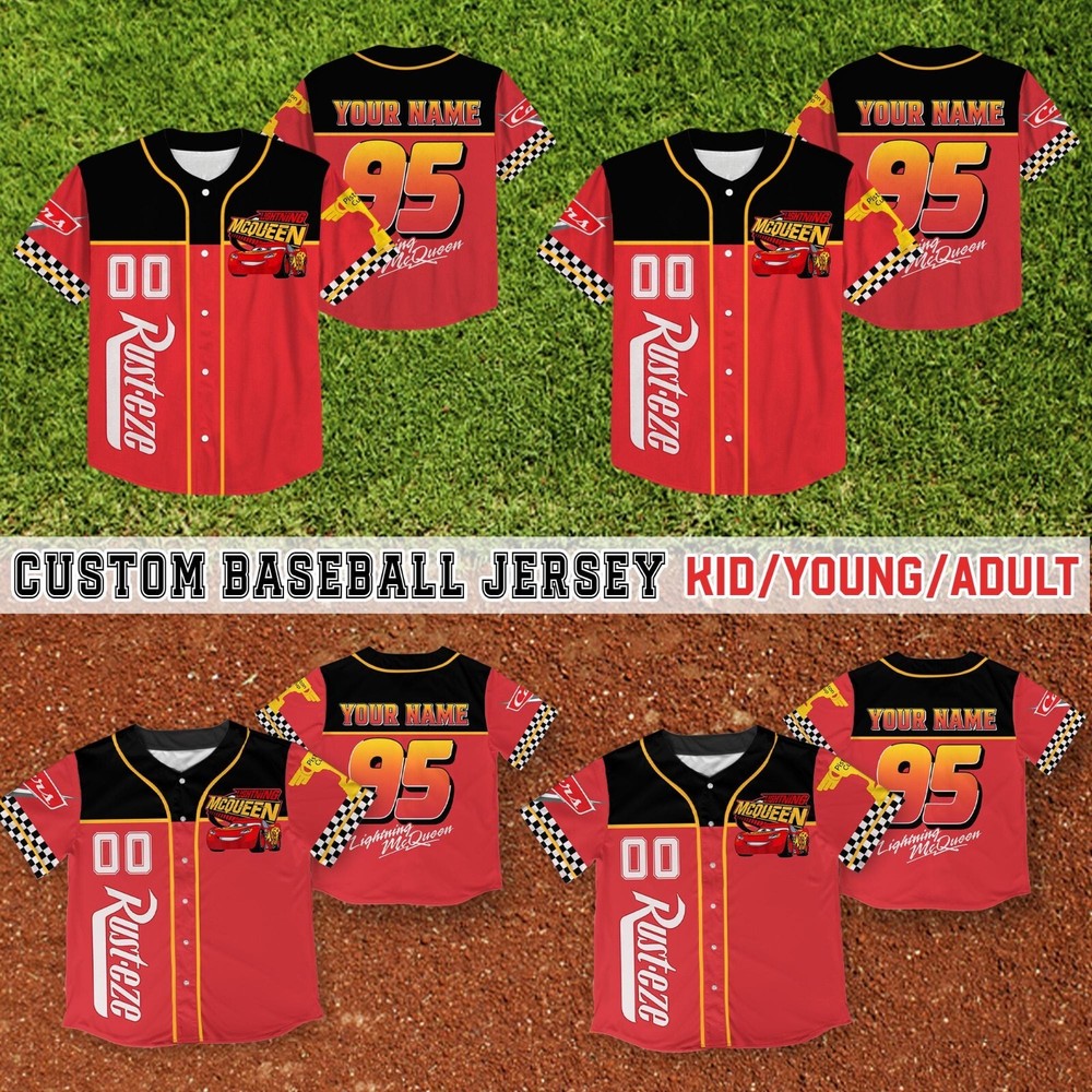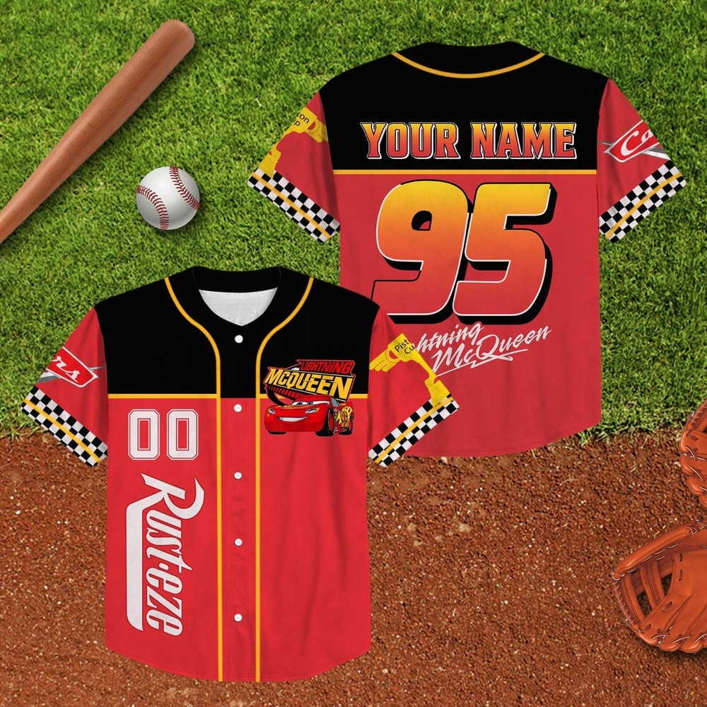 Custom Lightning McQueen Disney Baseball Jersey for Kids & Adults