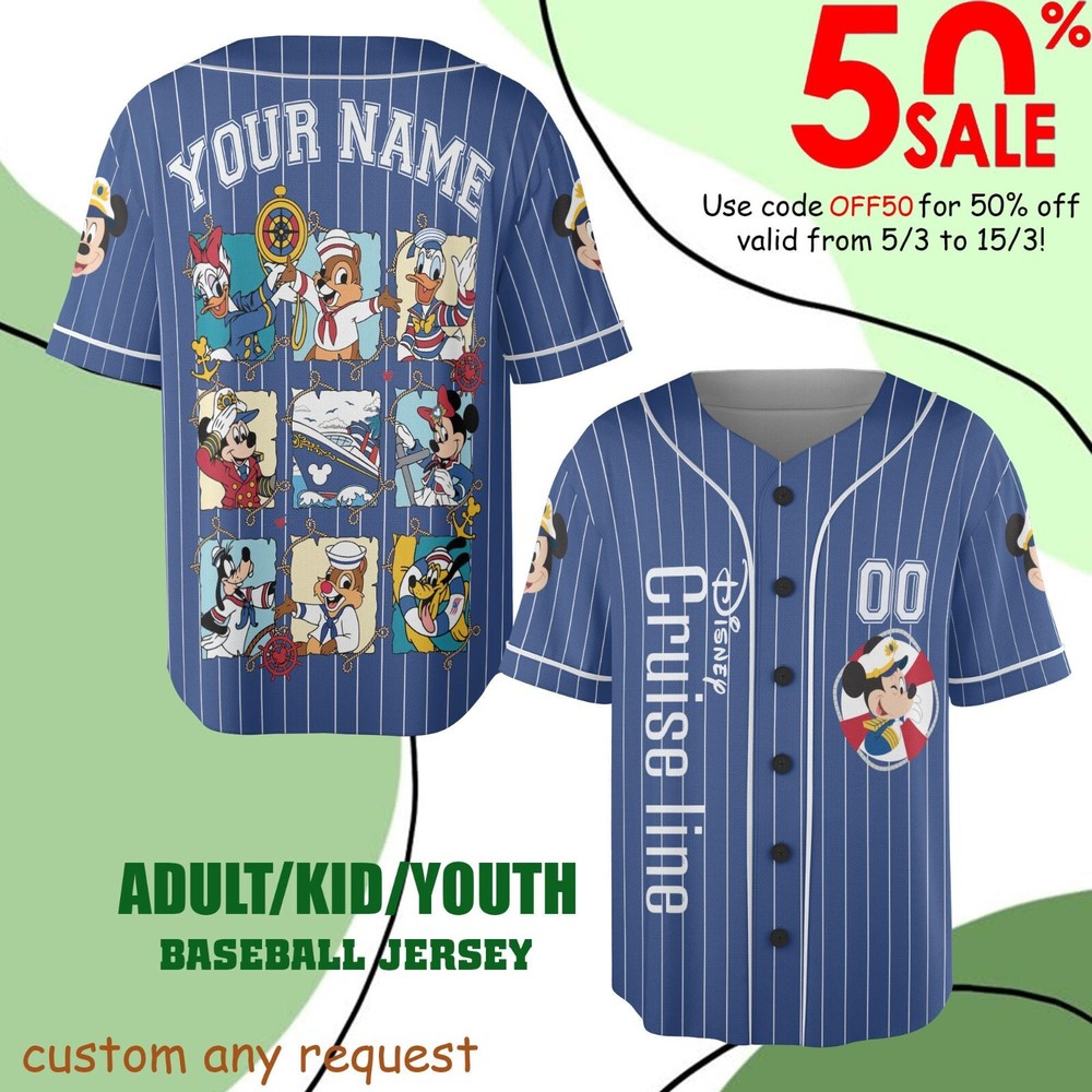 Custom Disney Mickey Cruise Line Baseball Jersey for Kids & Adults