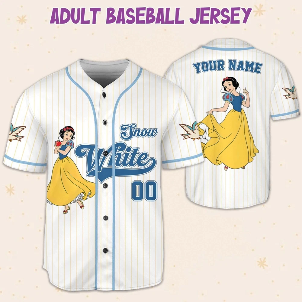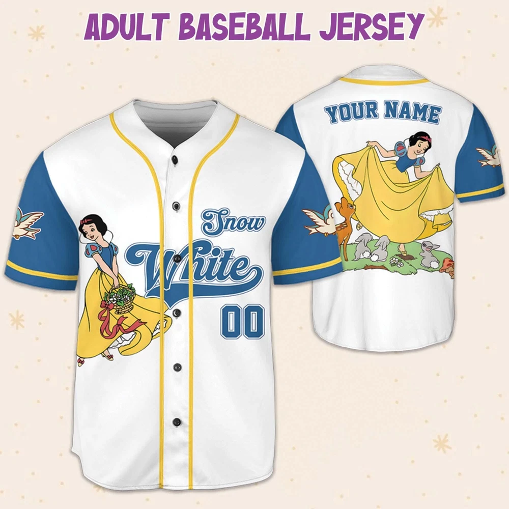 Absolutely love this Snow White jersey! The colors are vibrant, and the fit is perfect—super comfy with just the right amount of stretch. The DTG print looks amazing, and the material feels high-quality. Shipping was faster than expected, and it arrived in great condition. A must-have for Disney fans!