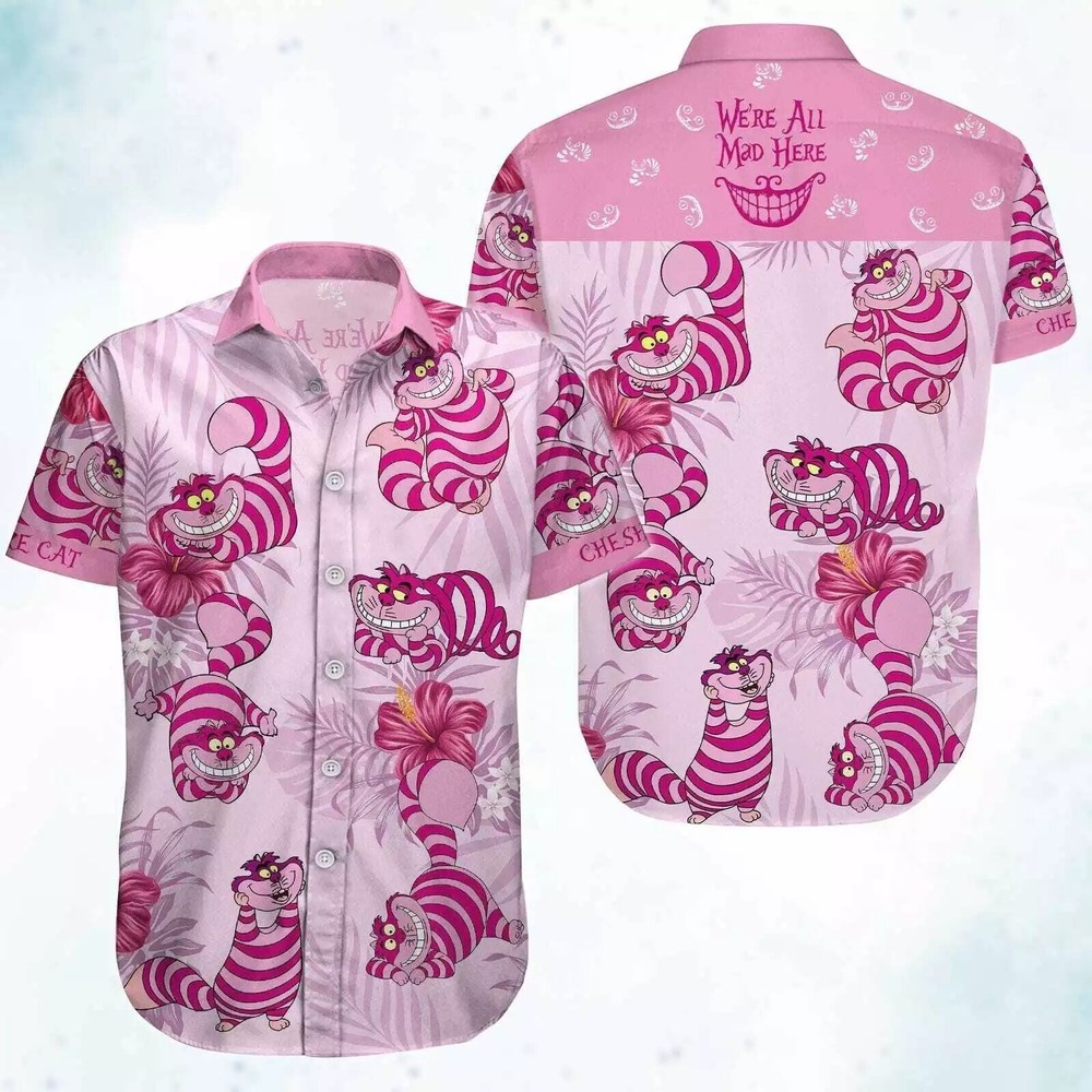 Cute Cheshire Cat Alice In Wonderland We're All Mad Hawaiian Shirt