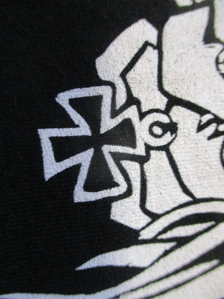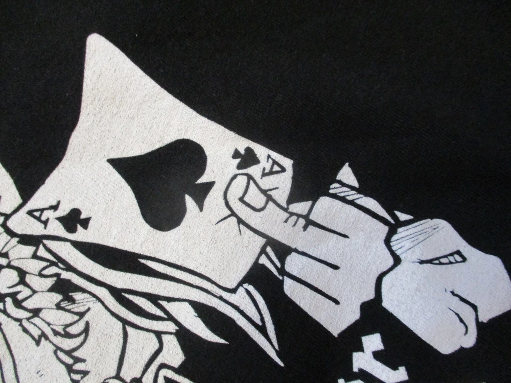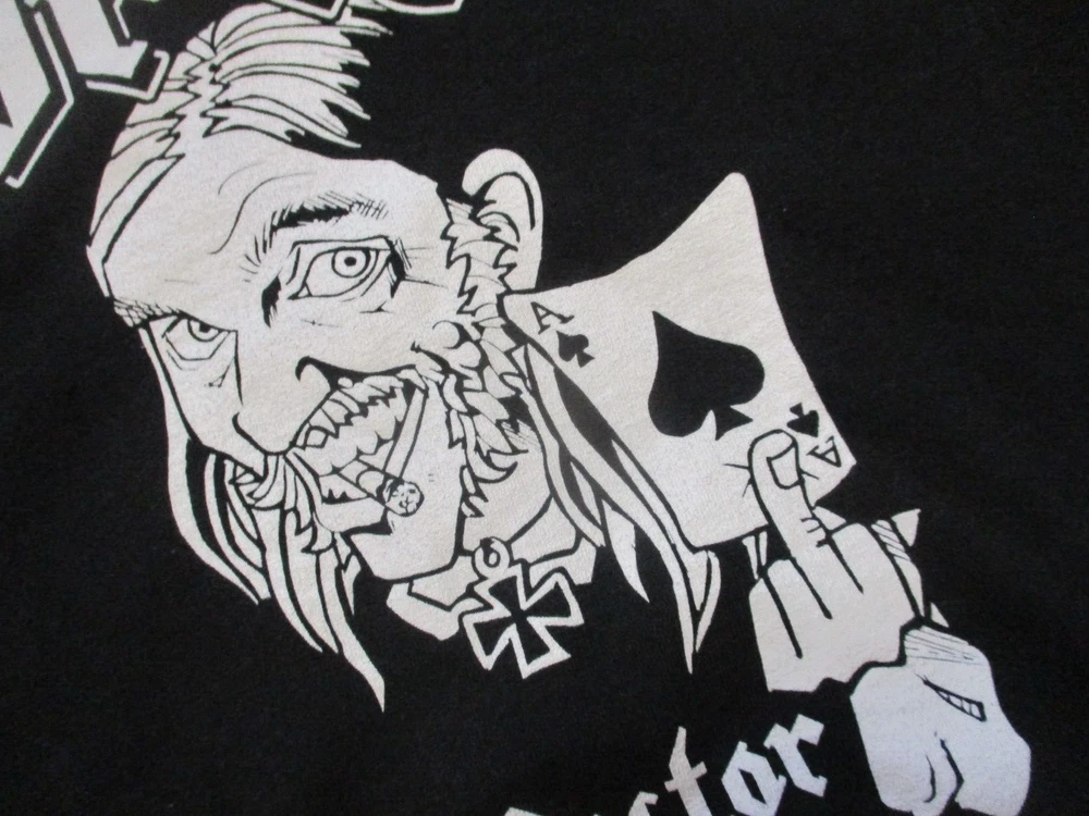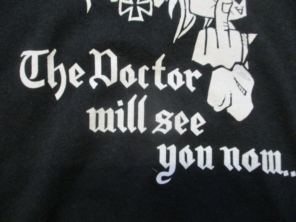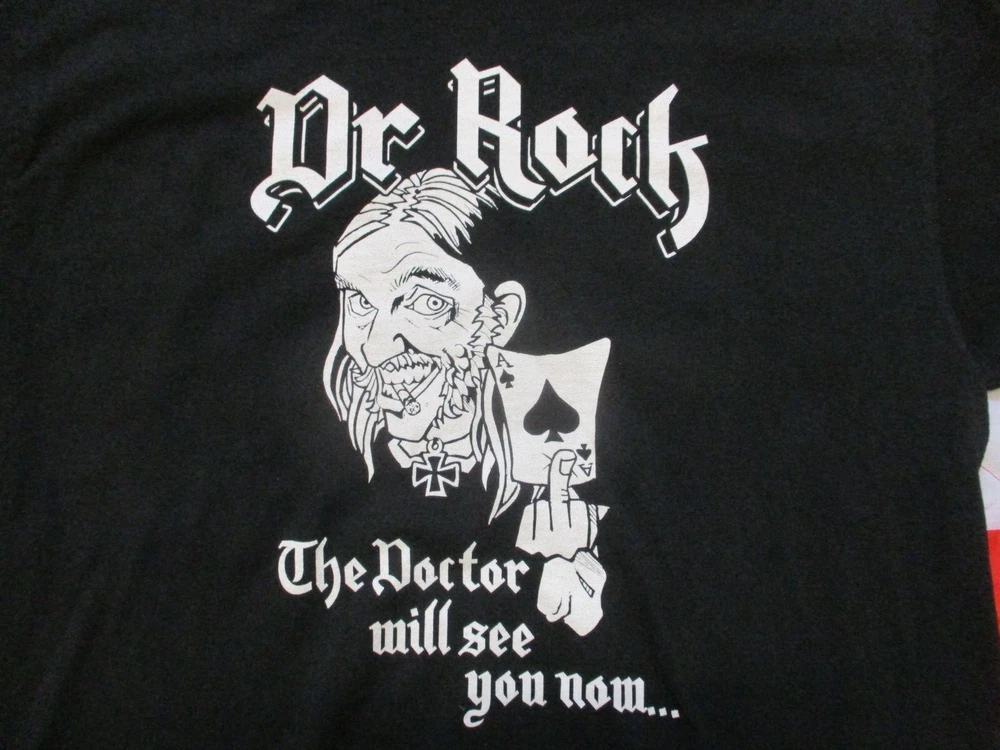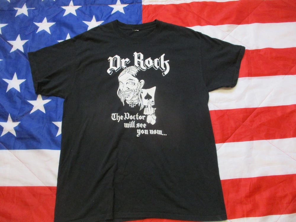 A DR ROCK T SHIRT ... WITH THE DOCTOR ON FRON AND WORLD WAR TWO GERMAN KNIGHT IRON CROSS ROUND HIS NEACK AND ACE OF SPADES DECK OF CARDS IN HIS HAND .. AWESOME !! LARGE FRONT DESIGN . SIZE = MEDIUM TO LARGE = IT MEASURES 21" OR 53CM ARM PIT TO PIT LAID FLAT and will stretch . AND 29" LONG ,..please measure your self or own shirt for size match before buying please . COLOUR = BLACK PAYMENT WITHIN 2 DAYS OF BUYING PLEASE . NONE PAYERS WILL GET NONE PAYER STRIKE AND BLOCKED FROM BUYING FROM US FOR LIFE. THANKS many more items liSted you will like such as GUNS & ROSES , AC/DC , IRON MAIDEN , GREEN DAY , WHITESNAKE , METALICA MOTORHEAD AND LEVIS EDWIN LEE WRANGLER AND BRAVE STAR SELVAGE DENIM JEANS AND TRUCKER JACKETS AND SHERPA WINTER JACKETS , RED WINGS BOOTS , DANNER , CARHARTT BDU CARGO PANTS , THE NORTH FACE NUPTSIE JACKET , ALL SAINTS , ARACTERYX LEAF BRAVO GORE TEX JACKET AND ALPHA SOFT SHELL , ZERO FOXTROT . ALPHA INDUSTRIES M65 JACKET AND MA1 AND CWU . VANS TRAINERS , GYM SHARK SHORTS , AND MORE TAKE A LOOK