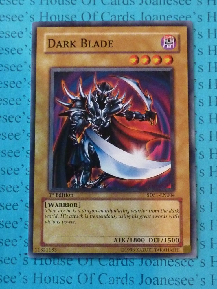 This is a Common Dark Warrior Dark Blade 4 Stars ATK/1800 DEF/1500 Card text: They say he is a dragon-manipulating warrior from the dark world. His attack is tremendous, using his great swords with vicious power. 5DS1 -EN004 1st Edition English Mint/NMint Condition Totally Original Konami (or your money back!) I will deliver in safe packaging to keep it in perfect condition. Ideal for players and collectors alike. Check out my other items! I will combine postage costs for multiple purchases. Sign up for my email newsletters by adding my eBay Shop to your favourites