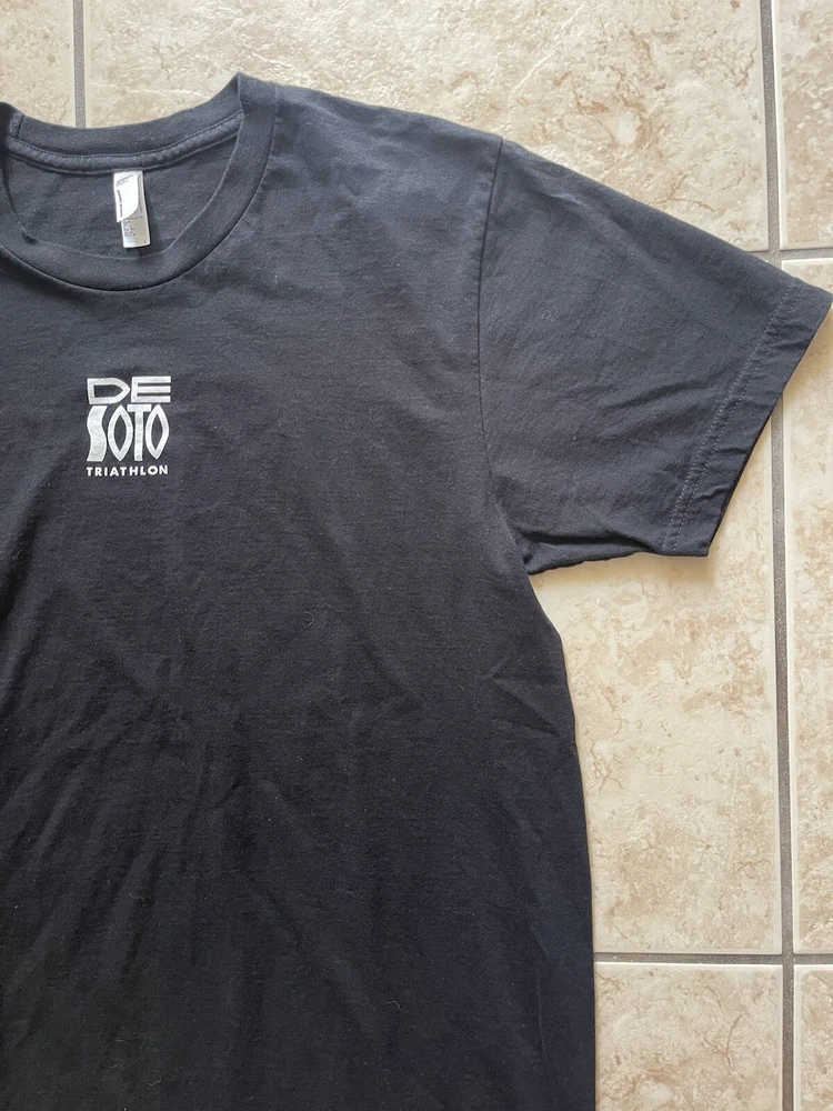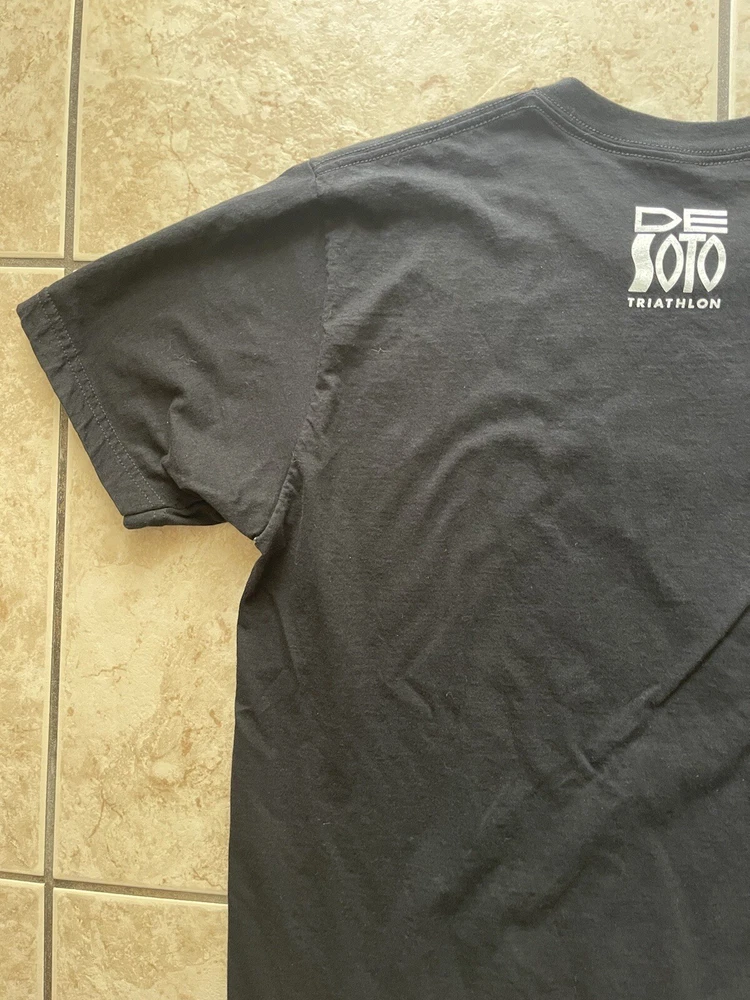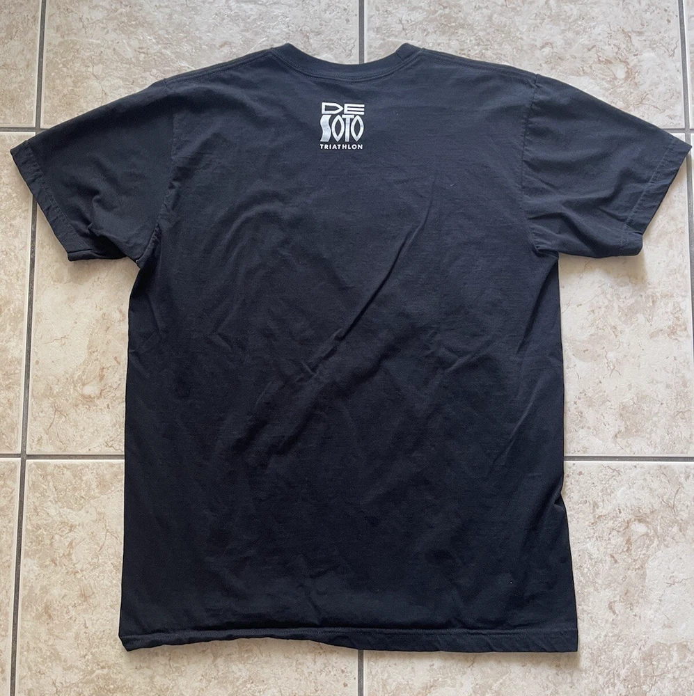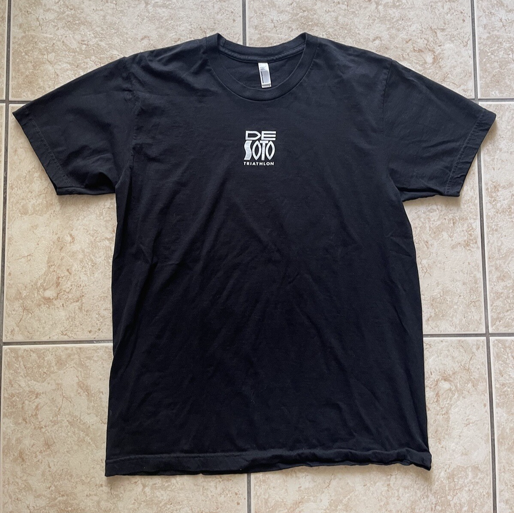 Brand : De Soto Triathlon Sportswear Style: Short Sleeve T-Shirt Colors: Black, White Size: Men's Large (L) Features / Tags : Light, Running, Exercise, Gym, Track, USA, Athletic, Performance, Cycling, Bike, BMX, Mountain, Small Chest Logo, Tournament, Competition, Sports, College, Triathlon, Endurance, Trail, Camping, Track, Race, Office, Work, Club, Training Condition: Gently Used, Well Taken Care Of, Overall Great Condition Please Feel Free To Message Us With Any Questions