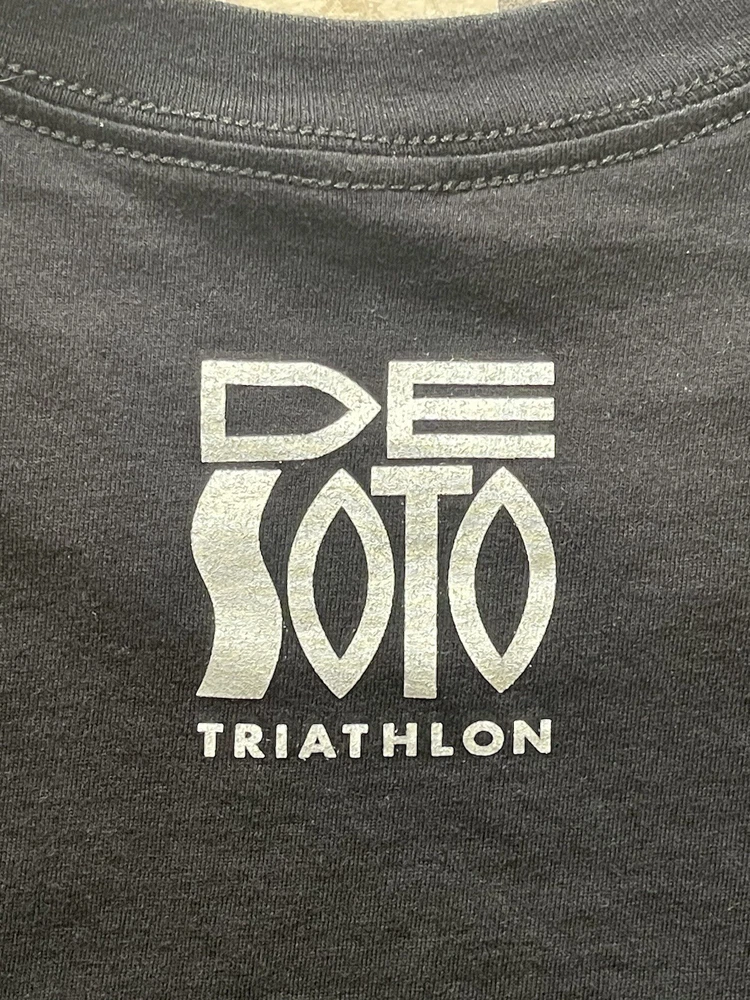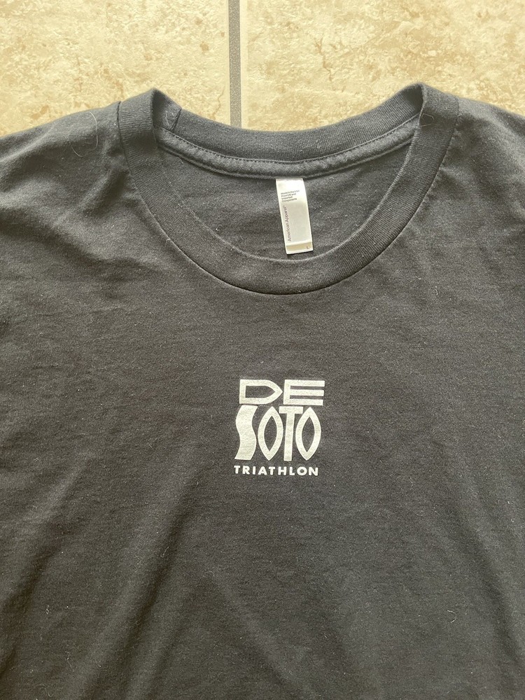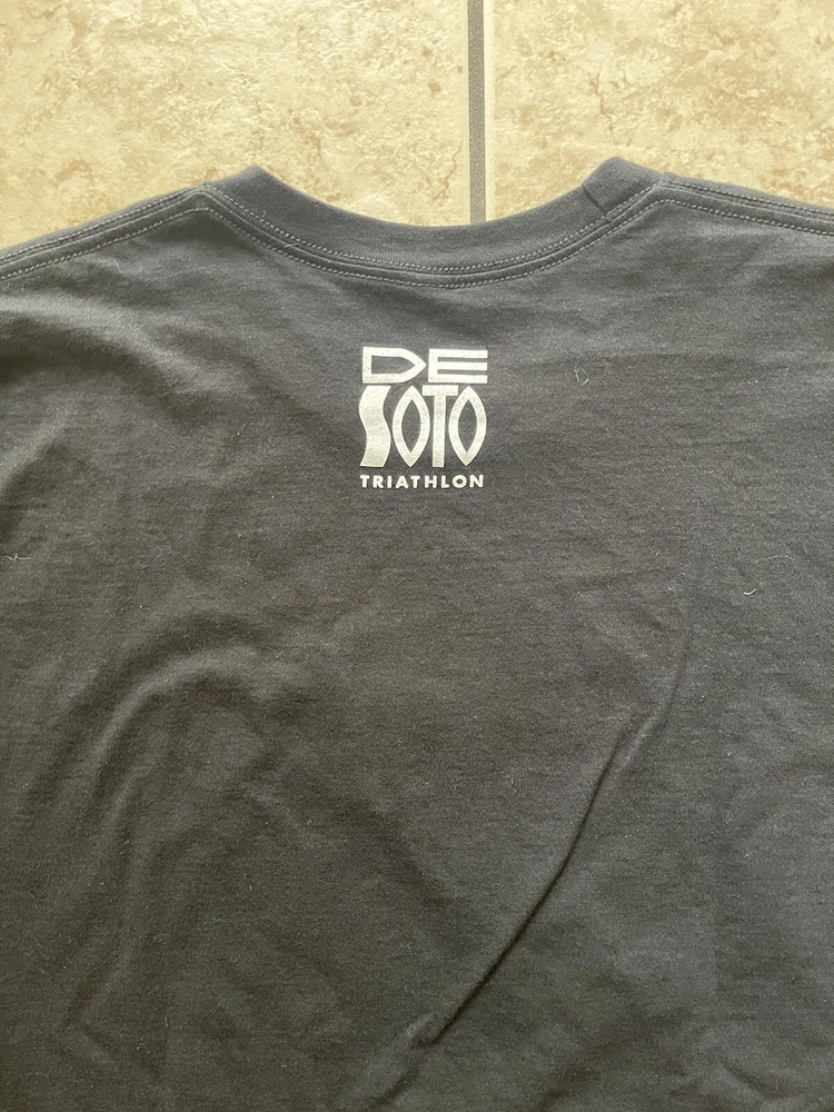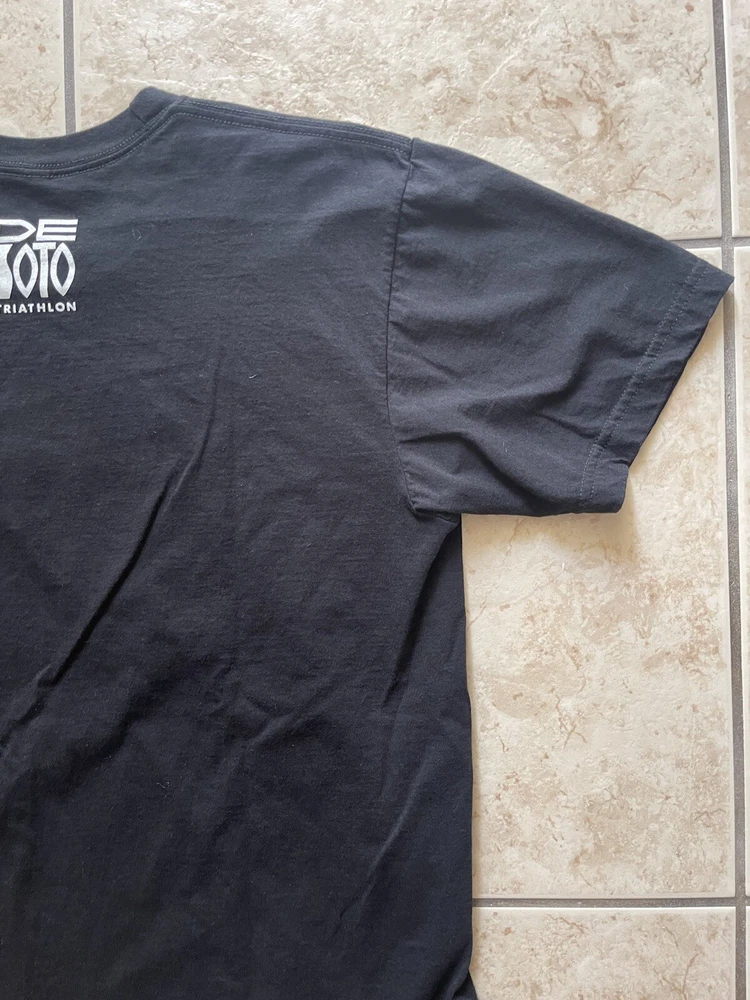 Brand : De Soto Triathlon Sportswear Style: Short Sleeve T-Shirt Colors: Black, White Size: Men's Large (L) Features / Tags : Light, Running, Exercise, Gym, Track, USA, Athletic, Performance, Cycling, Bike, BMX, Mountain, Small Chest Logo, Tournament, Competition, Sports, College, Triathlon, Endurance, Trail, Camping, Track, Race, Office, Work, Club, Training Condition: Gently Used, Well Taken Care Of, Overall Great Condition Please Feel Free To Message Us With Any Questions