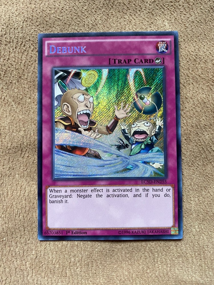 You are getting the secret rare, 1st edition, lightly played Debunk official Yu-Gi-Oh! card from the picture....