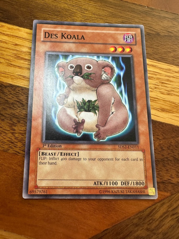 Hello! You are buying one Des Koala 5DS2-EN011 1st Edition Common in played condition! Reason for played condition is general play/scratchwear, mostly on back. See photos for details! As a thank you for buying from me, I will throw in two free Yugioh commons! Thank you so much for looking, have a great day! If there is ever an issue, please let me know so I can do whatever I can to resolve it! Please check out my other items! I have many more single cards!