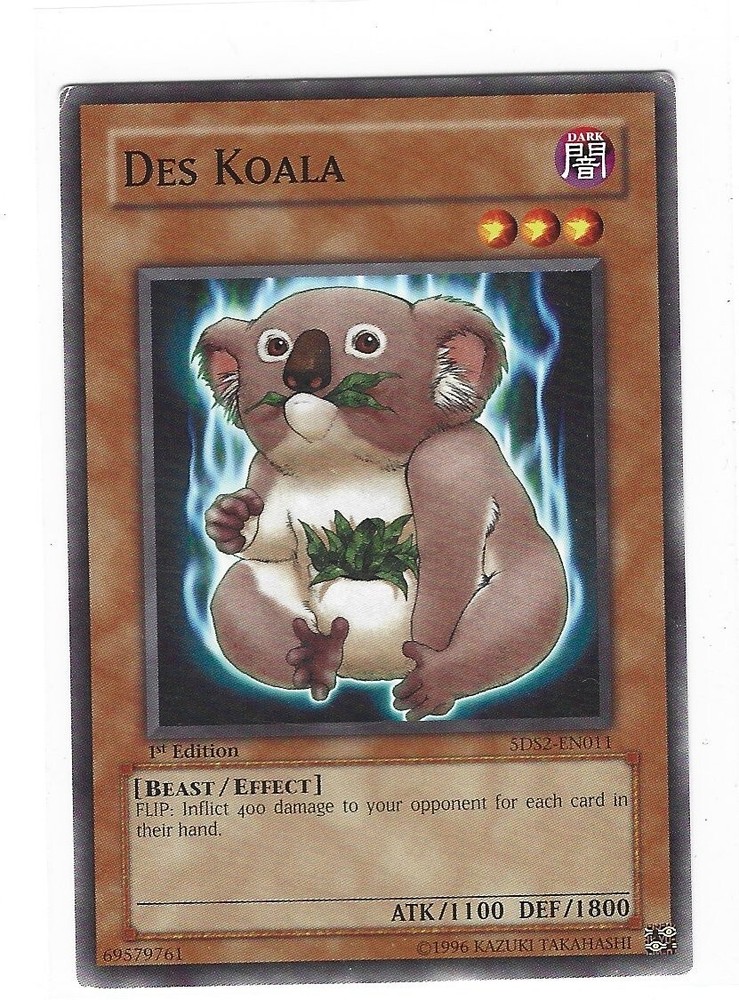 The product is a 1st Edition Common Yu-Gi-Oh! TCG card named "Des Koala." Manufactured by Konami, this card features the image of a koala character and belongs to the 5DS2-EN011 set. The card is in English language and is a non-domestic product, indicating that it is not exclusive to a specific region. With its rarity classified as common, this Yugioh card is a collectible item that can be used in gameplay within the Yu-Gi-Oh! Trading Card Game. Try Juan's fanatic Beef Jerky. One of EBay's top selling jerky. Over 5000 feedbacks than become a fan yourself. Please check back often. Cards will be updated daily. Thanks for looking. ITEM WILL BE SENT ECONOMY SHIPPING ECONOMY SHIPPING DETAILS ARE SHIPPED IN REGULAR LETTER ENVELOPE WITH TRACKING# ( CARD WILL BE PROTECTED WITH A TOP LOADER) Larger orders will be shipped in a bubble mailer with tracking.