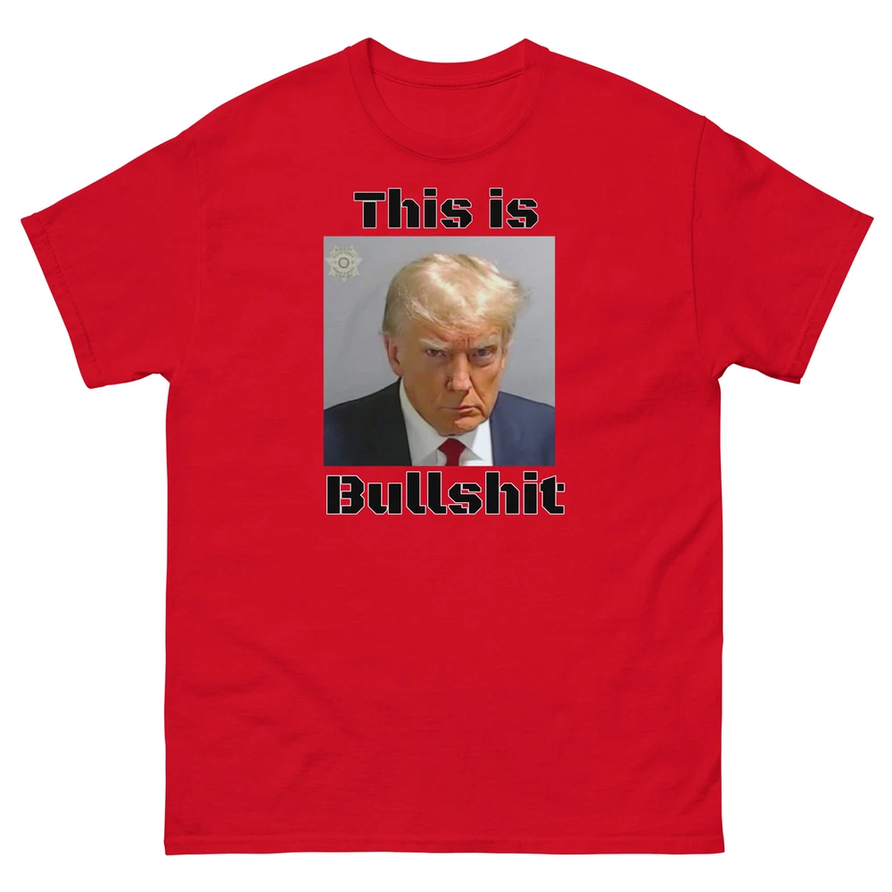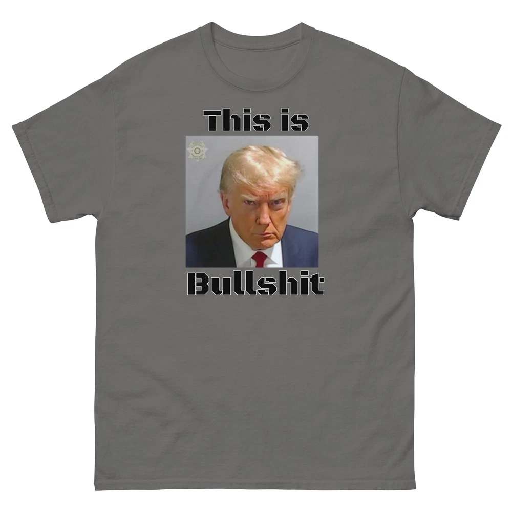 HISTORICAL TRUMP ARREST MUG SHOT TEE SHIRT- ONE OF A KIND THIS IS BULLSHIT The 100% cotton men's classic tee will help you land a more structured look. It sits nicely, maintains sharp lines around the edges, and goes perfectly with layered streetwear outfits. Plus, it's extra trendy now! • 100% cotton • Sport Grey is 90% cotton, 10% polyester • Ash Grey is 99% cotton, 1% polyester • Heather colors are 50% cotton, 50% polyester • Fabric weight: 5.0–5.3 oz/yd² (170-180 g/m²) • Open-end yarn • Tubular fabric • Taped neck and shoulders • Double seam at sleeves and bottom hem • Blank product sourced from Honduras, Nicaragua, Haiti, Dominican Republic, Bangladesh, Mexico Size guide LENGTH (inches) WIDTH (inches) SLEEVE LENGTH (inches) S 28 18 15 ⅝ M 29 20 17 L 30 22 18 ½ XL 31 24 20 2XL 32 26 21 ½ 3XL 33 28 22 ¾ LENGTH (cm) WIDTH (cm) SLEEVE LENGTH (cm) S 71.1 45.7 39.7 M 73.7 50.8 43.2 L 76.2 55.9 47 XL 78.7 61 50.8 2XL 81.3 66 54.6 3XL 83.8 71.1 58