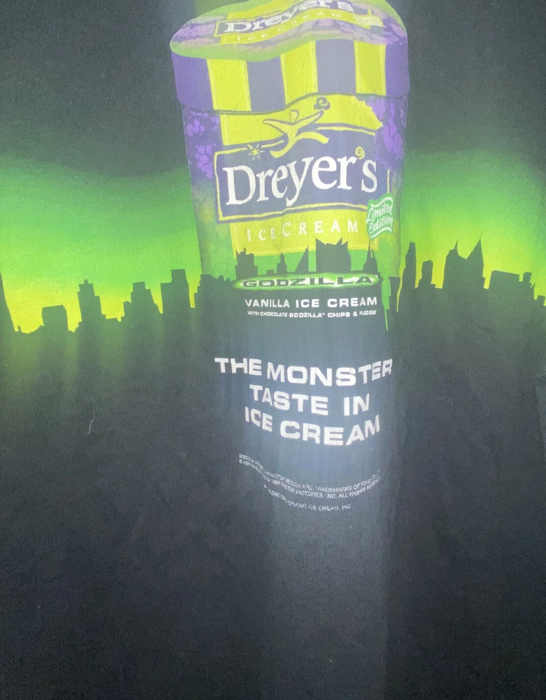 This Dreyers and Edys Ice Cream branded shirt is perfect for any casual occasion. Made from 100% cotton, it features a collared neckline, short sleeves, and button closure. The multicolor shirt with a Godzilla Vanilla graphic print is a great addition to any collection. This XL size shirt is designed to fit regularly and is made with an easy-care fabric type suitable for all seasons. The shirt's style and movie advertising theme make it a unique piece to wear. Whether it's winter, summer, fall, or spring, this shirt is perfect for any weather.
