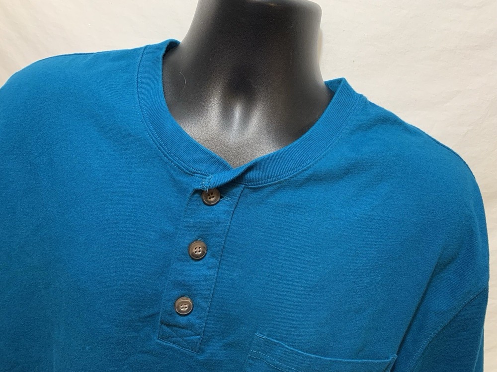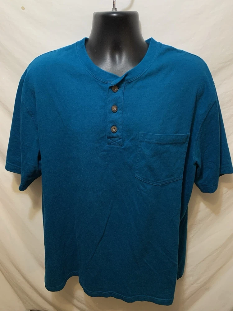 This Duluth Trading Company longtail heavy T-shirt is a must-have for any casual and comfortable cowboy. Made of a durable cotton blend material, this red shirt features a solid pattern, short sleeves, and a henley neckline. The relaxed fit adds to the comfort of the shirt, making it perfect for all seasons. The shirt is available in size XL and is designed for men. The shirt is perfect for anyone who wants to add a touch of style to their wardrobe. It is suitable for a variety of occasions, from a day out with friends to a casual workday. The shirt is not only stylish but also durable, making it a great addition to your wardrobe. Pit to pit 26 1/4 in