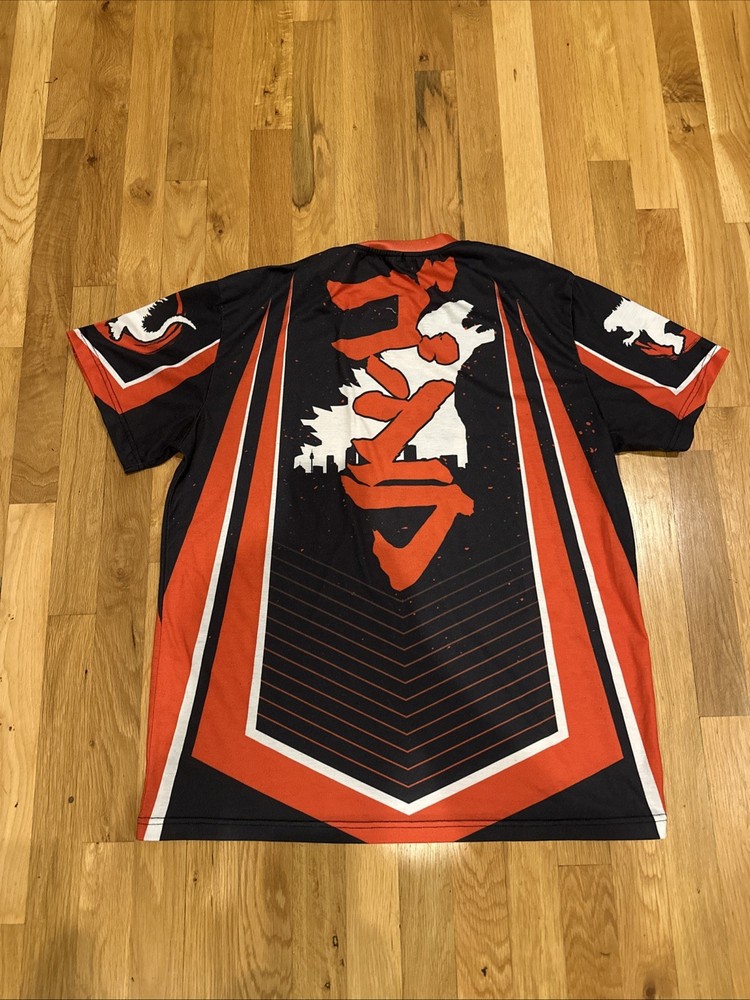 Dungeons and Dragons D&D DYKHMILY Godzilla (Rare) Large Red Jersey Shirt. Condition is Pre-owned - Excellent. Shipped with USPS Ground Advantage....