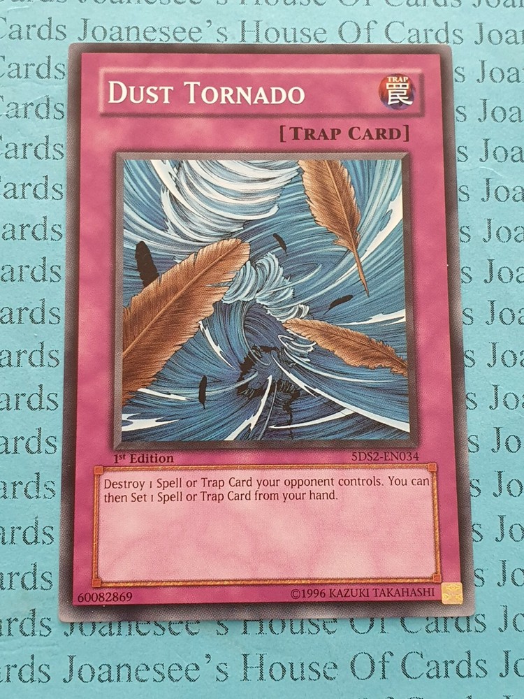 This is a Common Trap Dust Tornado Card text: Target 1 Spell/Trap your opponent controls; destroy that target, then you can Set 1 Spell/Trap from your hand. 5DS2 -EN034 1st Edition English Mint/NMint Condition Totally Original Konami (or your money back!) I will deliver in safe packaging to keep it in perfect condition. Ideal for players and collectors alike. Check out my other items! I will combine postage costs for multiple purchases. Sign up for my email newsletters by adding my eBay Shop to your favourites