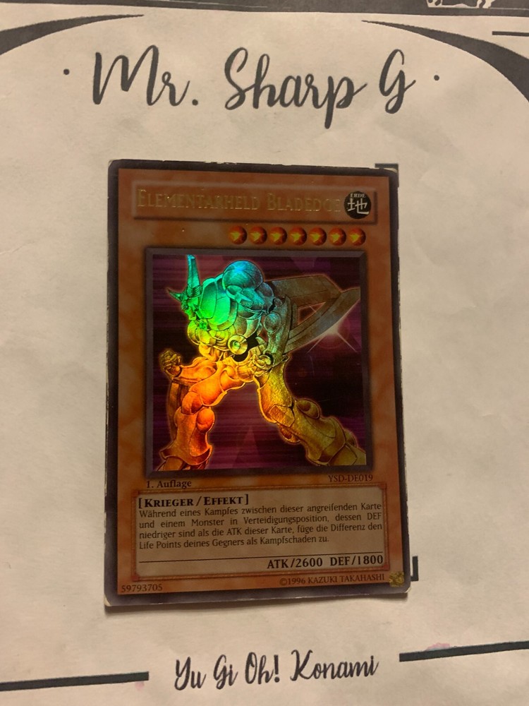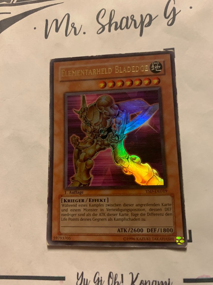 - Mr. Sharp G - - Online Store - TRADING CARDS-TCG-COLLECTION-SETS-TOURNAMENT-Yu Gi Oh! Konami * * * ELEMENTARHELD BLADEDGE - 1. AUFLAGE YSD-DE019 - Bitte schauen Sie sich die beigefügten Bilder an, um einen vollständigen Überblick über den Zustand jedes Artikels zu erhalten. - Zustand des Artikels: Gebraucht - in einem beschädigtem Zustand. - Typ/ Serie: KRIEGER/ EFFEKT / 1. AUFLAGE YSD-DE019 - Seltenheitsstufe/ Rarity: ULTRA RARE - Edition : STARTER DECK: GX 2006 * * * + Kartenschutzhülle & Toploader inklusiver im Preis + mehrfache Bestellung = einmalige Versandkosten + versicherter Versand Bestellung in Höhe - v. 8,50EUR in Deutschland/ Inland - v. 12,50EUR im Ausland/ International + Großbestellungen kostenloser Versand Inland und International - Bei Fragen, Details, nicht im Bestand gewünschte Karten/ Artikel oder Versandgutschriften schreiben Sie uns! Wir freuen uns auf Ihre Nachricht! - Vielen Dank für Ihr Vertrauen, Unterstützung und Besuch in unserem Store ! - Ihr Mr. Sharp G Team