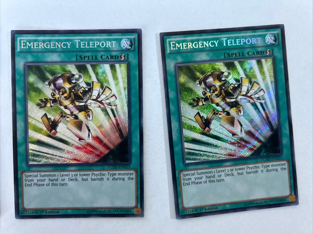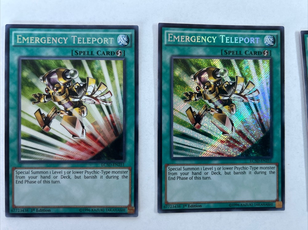 3x copies Emergency Teleport Rarity: Secret Rare Set: LC5D Card Number: EN251 Condition: NM/M Notes: No issues all copies mint