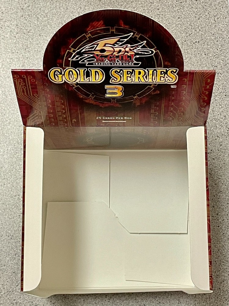 * EMPTY BOX * Yu-Gi-Oh! 5D's Gold Series 3 * EMPTY BOX* ____________________________________________________________ Lightning Fast and Secured USPS Shipping with Tracking & Delivery Confirmation USA Shipping is FREE!!! International Shipping is available via eBay's global shipping program eBay sets and collects the shipping cost directly. __________________________________________________ Your order will be processed promptly upon payment. If you are pleased with your order, please leave us a positive feedback and add us as your favorite store For any single cards needs to complete your sets, please shop our singles' .com web site by the same name chicagocards where you can search over 1,000,000 cards: base set, inserts, auto, relic, ...etc Thank you for shopping chicagocardsdotcom serving the Hobby for more than 30 years and look forward to serving you for many more years to come!