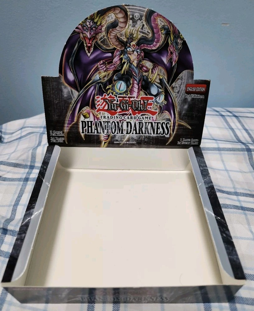 You'll receive the exact box in the title and photos. Box has some dents and creases due to age and storage. Still in good condition. If you have any questions or concerns, just DM me. Also, check out my other listing for more empty boxes. Also, follow me on IG @lobhunter for more deals This empty card box is perfect for storing your Yu-Gi-Oh! Phantom Darkness trading cards. The box is from the year 2008 and features Jaden Yuki on the cover. It is a great addition to any collector's set and is in English language. The packaging type is an empty card box, making it ideal for storing your cards without any unnecessary accessories. The manufacturer of the box is Konami and it is part of the Non-Sport Trading Cards category, specifically the Wrappers & Empty Card Boxes subcategory. Get this unique piece of Yu-Gi-Oh! memorabilia for your collection today!
