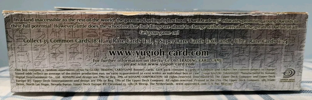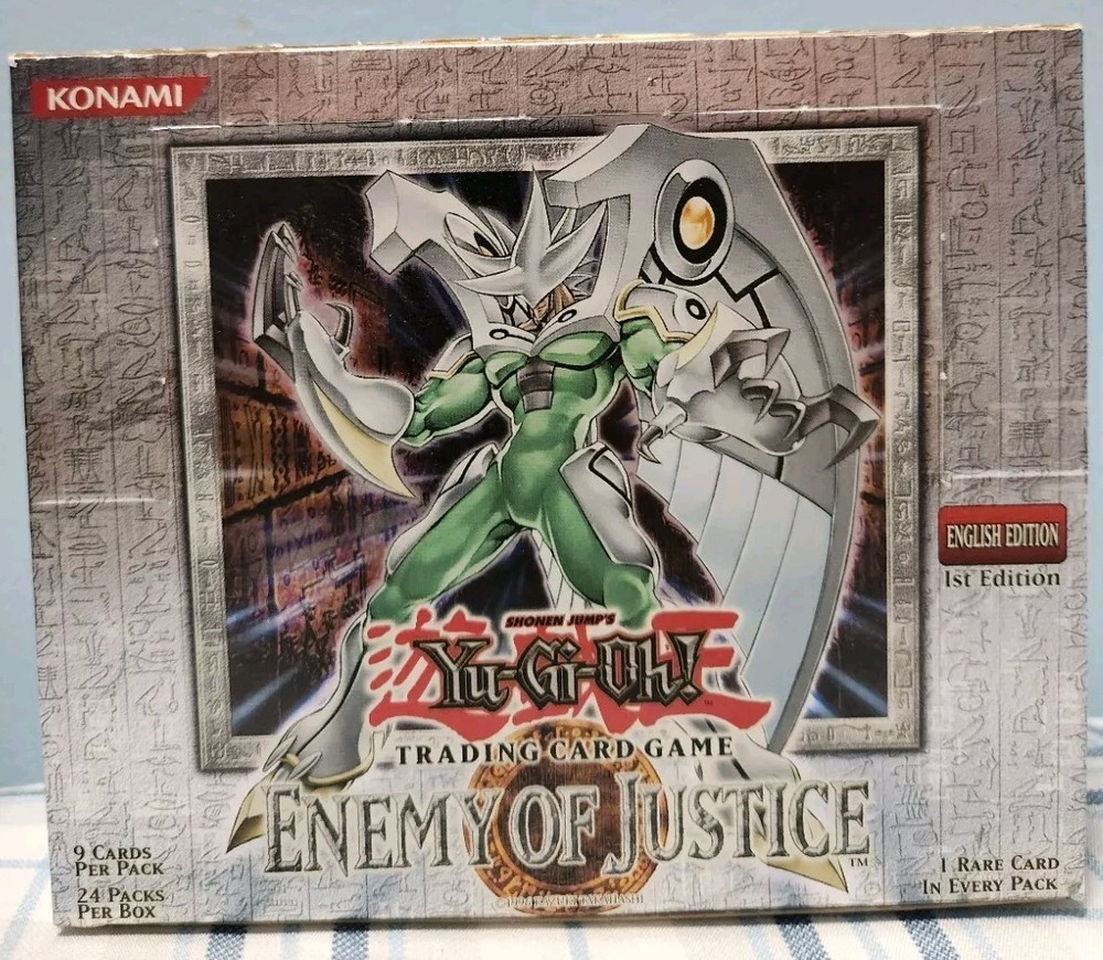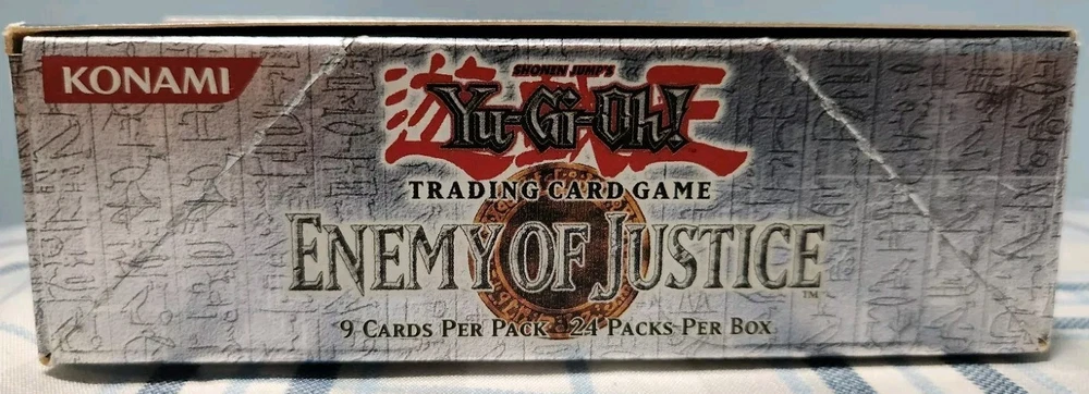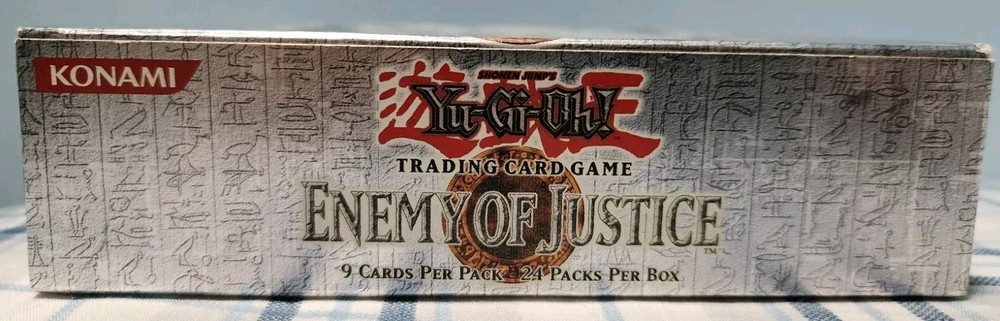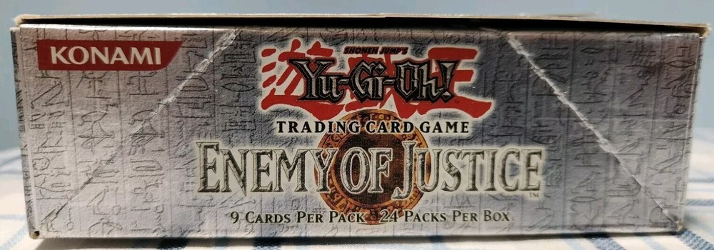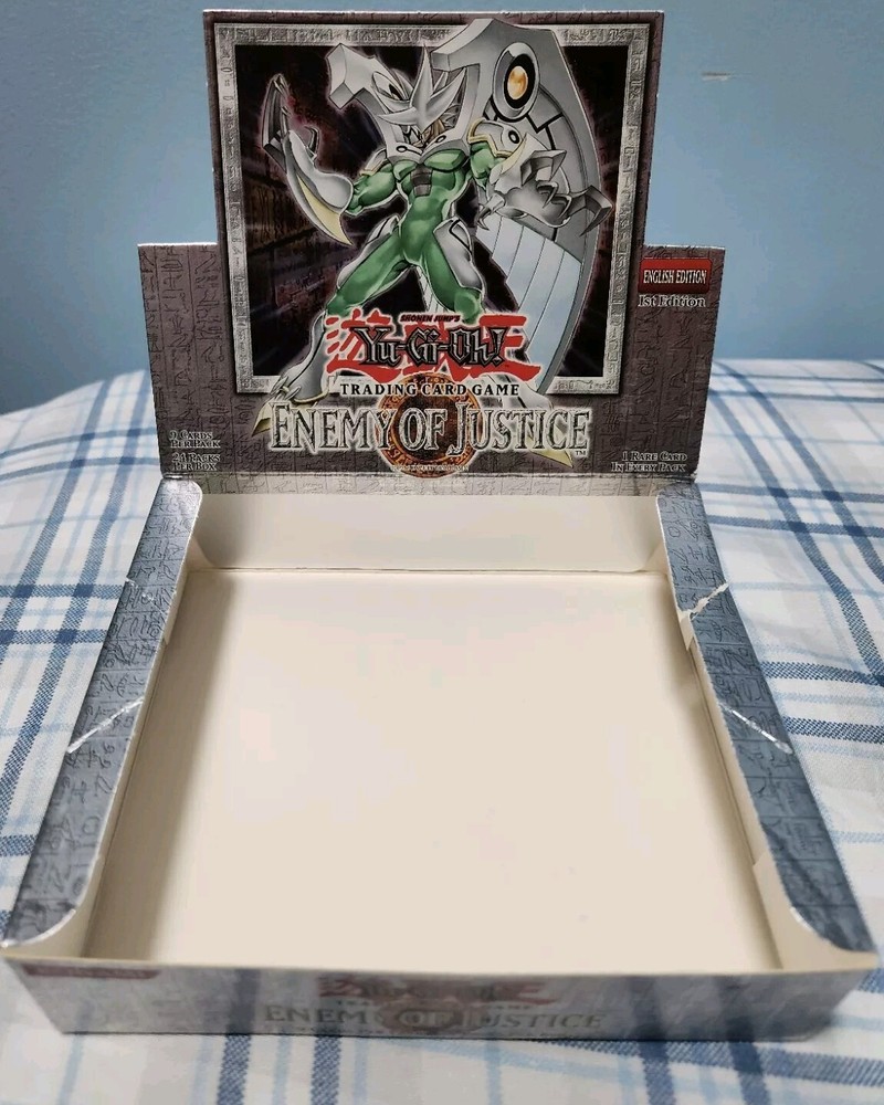 You'll receive the exact box in the title and photos. Box has some dents and creases due to age and storage. Still in good condition. If you have any questions or concerns, just DM me. Also, check out my other listing for more empty boxes. Also, follow me on IG @lobhunter for more deals This is an empty Yu-Gi-Oh! GX Enemy of Justice 1st Edition Hobby Booster Box. It is a vintage item manufactured by Konami in 2006. The box is in English language and features the character Box from the TV show Yu-Gi-Oh! GX. It is a non-sport trading card set and is perfect for collectors or fans of the franchise. The box is empty and does not contain any cards or boosters. It is a great item to add to a collection or as a decorative piece.