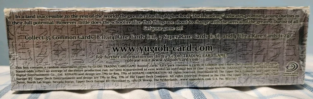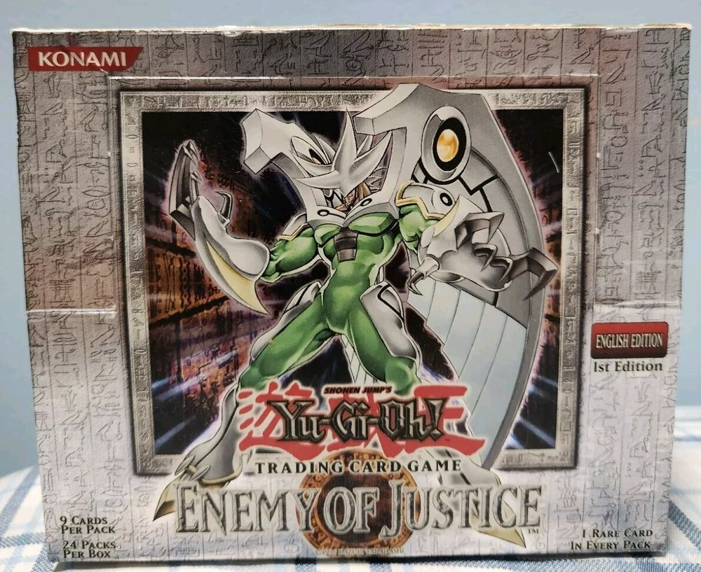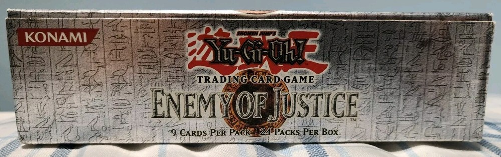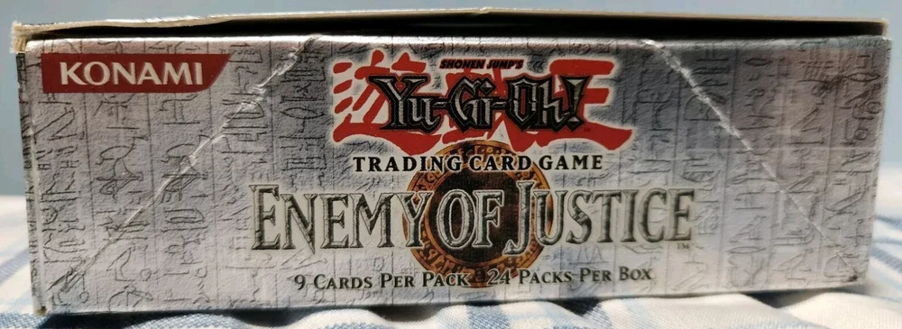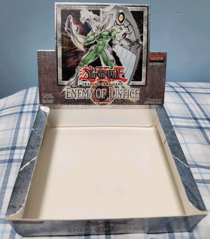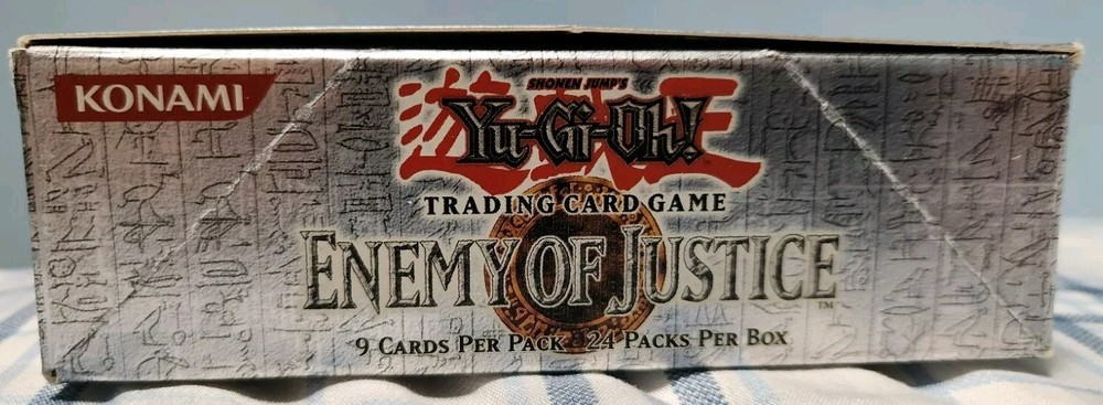 You'll receive the exact box in the title and photos. Box has some dents and creases due to age and storage. Still in good condition. If you have any questions or concerns, just DM me. Also, check out my other listing for more empty boxes. Also, follow me on IG @lobhunter for more deals This is an empty Yu-Gi-Oh! GX Enemy of Justice 1st Edition Retail Booster Box. It is a vintage item manufactured by Konami in 2006. The box is in English language and features the character Box from the TV show Yu-Gi-Oh! GX. It is a non-sport trading card set and is perfect for collectors or fans of the franchise. The box is empty and does not contain any cards or boosters. It is a great item to add to a collection or as a decorative piece.
