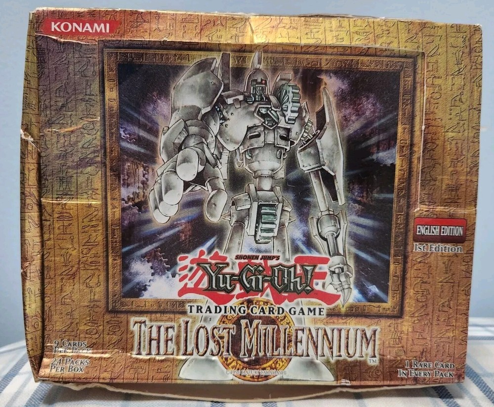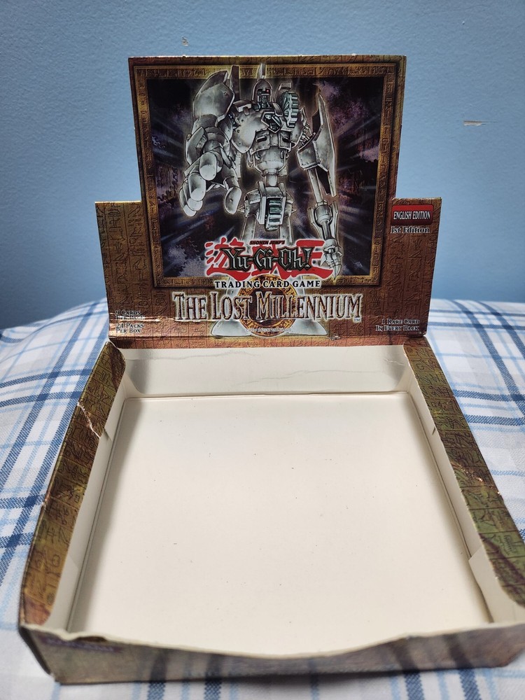 You'll receive the exact box in the title and photos. Box has some dents, creases, and some writing inside the box due to age and storage. If you have any questions or concerns, just DM me. Also, check out my other listing for more empty boxes. Also, follow me on IG @lobhunter for more deals This Yu-Gi-Oh! The Lost Millennium 1st Edition 24 Pack Hobby Booster Box is an excellent addition to any collector's or player's inventory. The box is designed for storing and displaying Yu-Gi-Oh! trading cards, and it features the iconic character Jaden Yuki. The box is empty, and it comes in its original packaging, making it perfect for those who want to store their cards in a safe and stylish way. The box was manufactured by Konami in 2006, and it is part of the Yu-Gi-Oh! franchise. The box is categorized under Collectibles, Non-Sport Trading Cards, and Wrappers & Empty Card Boxes, making it a must-have for any Yu-Gi-Oh! fan.
