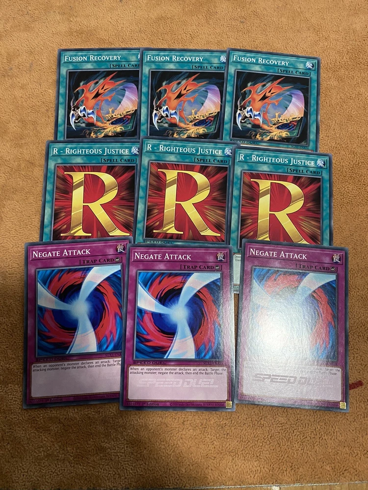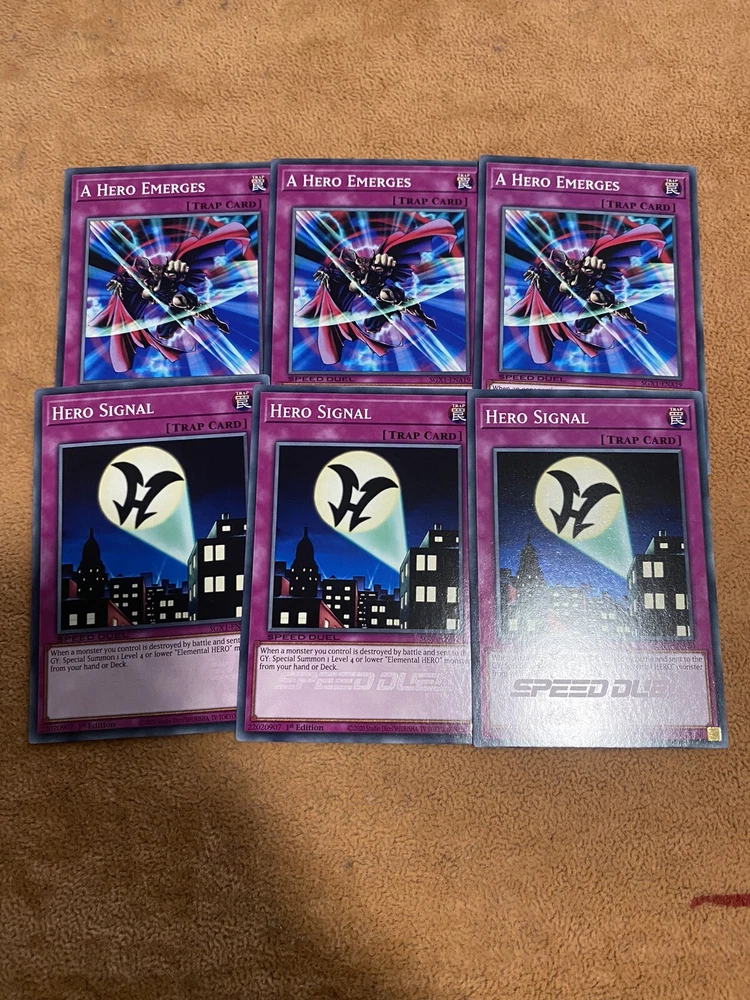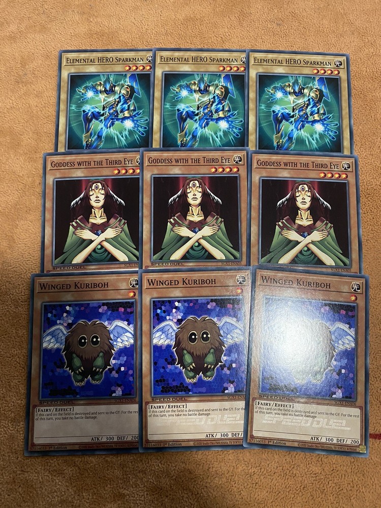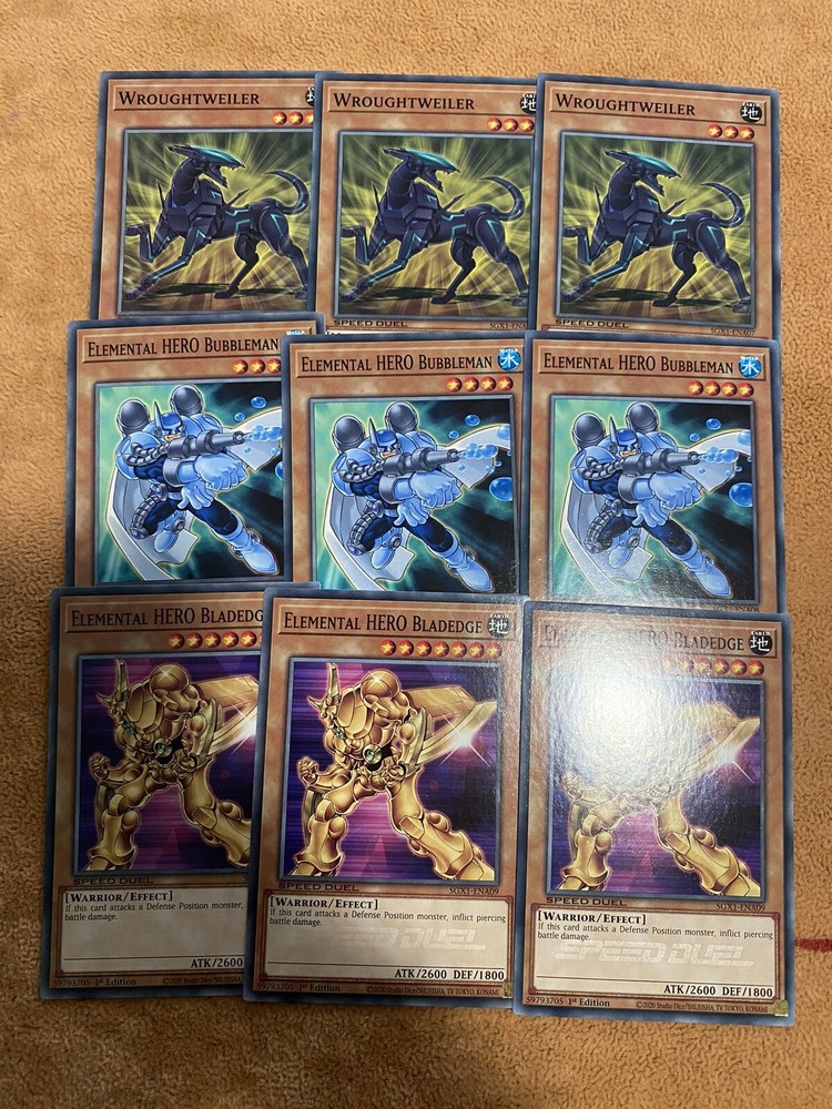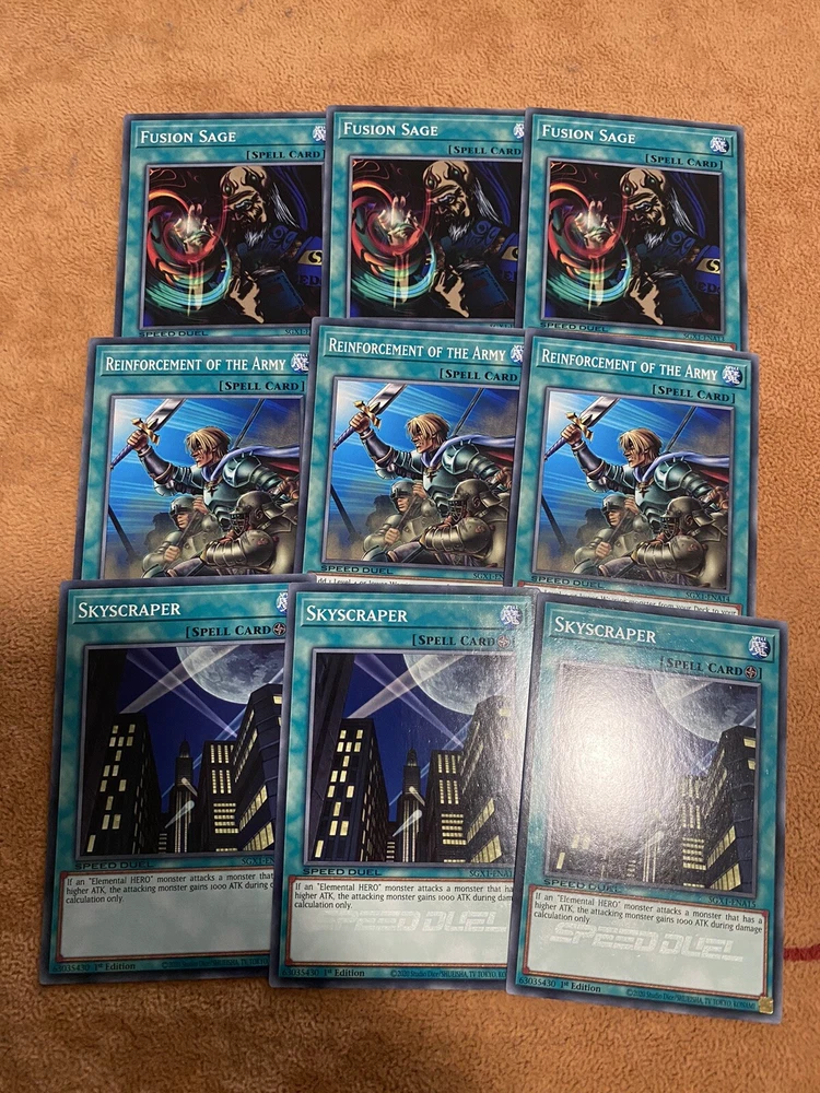 🔥Yugioh Elemental HERO 78 Card DECK CORE SPEED DUEL GX SGX1 The Elemental Hero Deck from Yu-Gi-Oh! Speed Duel GX is a powerful and versatile set of cards that can help you defeat your opponents in a variety of ways. The deck consists of 20 cards, including iconic monsters like Elemental Hero Burstinatrix and Elemental Hero Sparkman, as well as spell and trap cards that can boost your monsters' attack power or protect them from harm. With the right strategy, you can use the Elemental Hero Deck to summon powerful fusion monsters like Elemental Hero Flame Wingman and Elemental Hero Thunder Giant, and deal devastating blows to your opponents. So if you're looking for a deck that's full of heroism and excitement, give the Elemental Hero Deck a try! SGX1-ENA01 " Elemental HERO Avian " Common Normal Monster Speed Duel debut 1 SGX1-ENA02 " Elemental HERO Burstinatrix " Common Normal Monster Speed Duel debut 1 SGX1-ENA03 " Elemental HERO Clayman " Common Normal Monster Speed Duel debut 1 SGX1-ENA04 " Elemental HERO Sparkman " Common Normal Monster Speed Duel debut 1 SGX1-ENA05 " Goddess with the Third Eye " Common Effect Monster Speed Duel debut 1 SGX1-ENA06 " Winged Kuriboh " Common Effect Monster Speed Duel debut 1 SGX1-ENA07 " Wroughtweiler " Common Effect Monster Speed Duel debut 1 SGX1-ENA08 " Elemental HERO Bubbleman " Common Effect Monster Speed Duel debut 1 SGX1-ENA09 " Elemental HERO Bladedge " Common Effect Monster Speed Duel debut 1 SGX1-ENA10 " Elemental HERO Wildheart " Common Effect Monster Speed Duel debut 1 SGX1-ENA11 " Elemental HERO Necroshade " Common Effect Monster Speed Duel debut 1 SGX1-ENA12 " Polymerization " Common Normal Spell Reprint 1 SGX1-ENA13 " Fusion Sage " Common Normal Spell Speed Duel debut 1 SGX1-ENA14 " Reinforcement of the Army " Common Normal Spell Reprint 1 SGX1-ENA15 " Skyscraper " Common Field Spell Speed Duel debut 1 SGX1-ENA16 " Fusion Recovery " Common Normal Spell Reprint 1 SGX1-ENA17 " R - Righteous Justice " Common Normal Spell Speed Duel debut 1 SGX1-ENA18 " Negate Attack " Common Counter Trap Reprint 1 SGX1-ENA19 " A Hero Emerges " Common Normal Trap Speed Duel debut 1 SGX1-ENA20 " Hero Signal " Common Normal Trap Speed Duel debut 1 SGX1-ENA21 " Elemental HERO Flame Wingman " Common Effect Fusion Monster Speed Duel debut 1 SGX1-ENA22 " Elemental HERO Thunder Giant " Common Effect Fusion Monster Speed Duel debut 1 SGX1-ENA23 " Elemental HERO Rampart Blaster " Common Effect Fusion Monster Speed Duel debut 1 SGX1-ENA24 " Elemental HERO Steam Healer " Common Effect Fusion Monster Speed Duel debut 1 SGX1-ENA25 " Elemental HERO Darkbright " Common Effect Fusion Monster Speed Duel debut 1 SGX1-ENA26 " Elemental HERO Plasma Vice " Common Effect Fusion Monster Speed Duel debut 1 This item will be sent in a plastic sleeve/deck protector sleeve and in a Bubble Envelope for maximum protection. I usually ship out the next business day. Payment is due immediately. The faster the payment the faster i'll ship out. Questions or comments?? Feel free to contact me. I'll get back to you within 24 hours. Check out my eBay store for more Yugioh items!