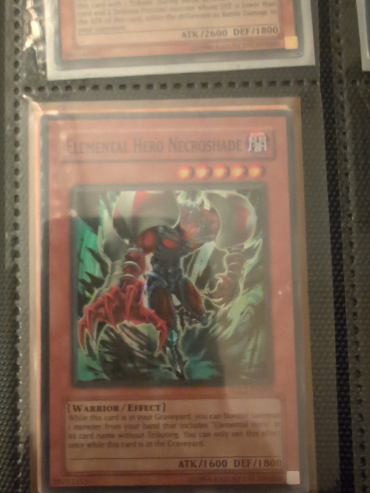 This is a Yu-Gi-Oh! TCG card named Elemental Hero Necroshade, from the - Yugi - set. It is a rare and powerful card that can be used in various strategic combinations to defeat opponents. The card features an iconic artwork of the character and is a must-have for collectors and players alike.