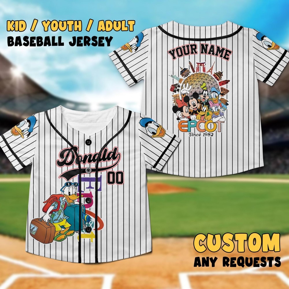 2025 Epcot Donald Duck Disney Baseball Jersey for Kids Men Women Festival Gift