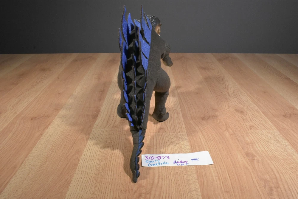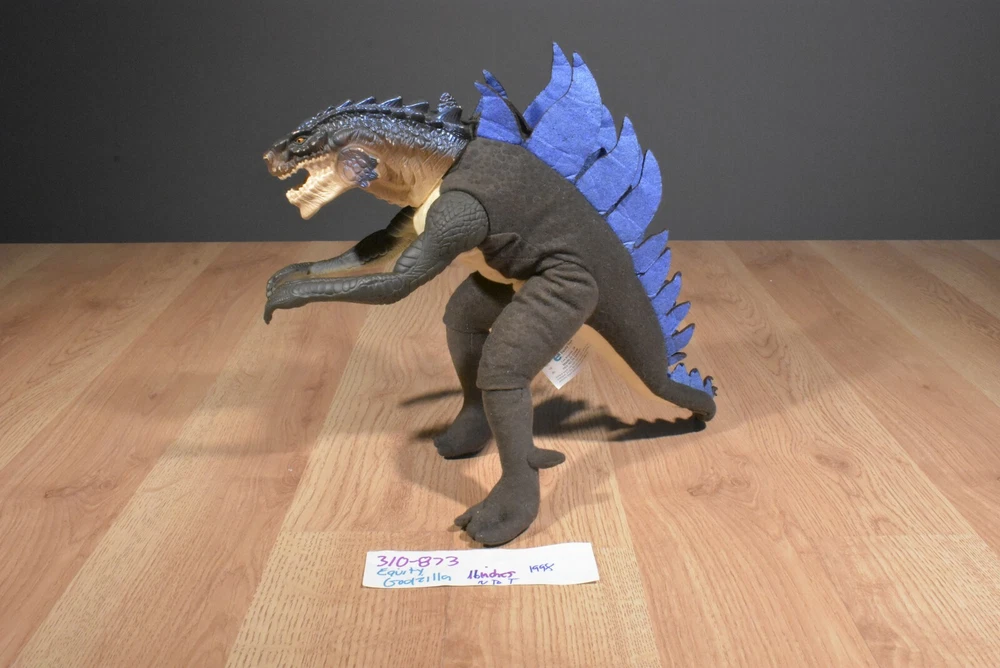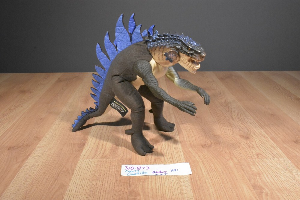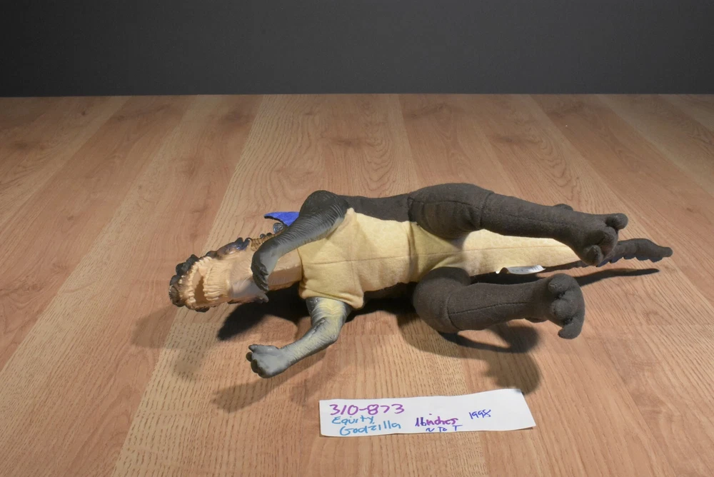 Equity Godzilla plush 12 inches standing, 16 inches nose to tail Front arms move, back legs and tail are poseable Good condition, smoke free