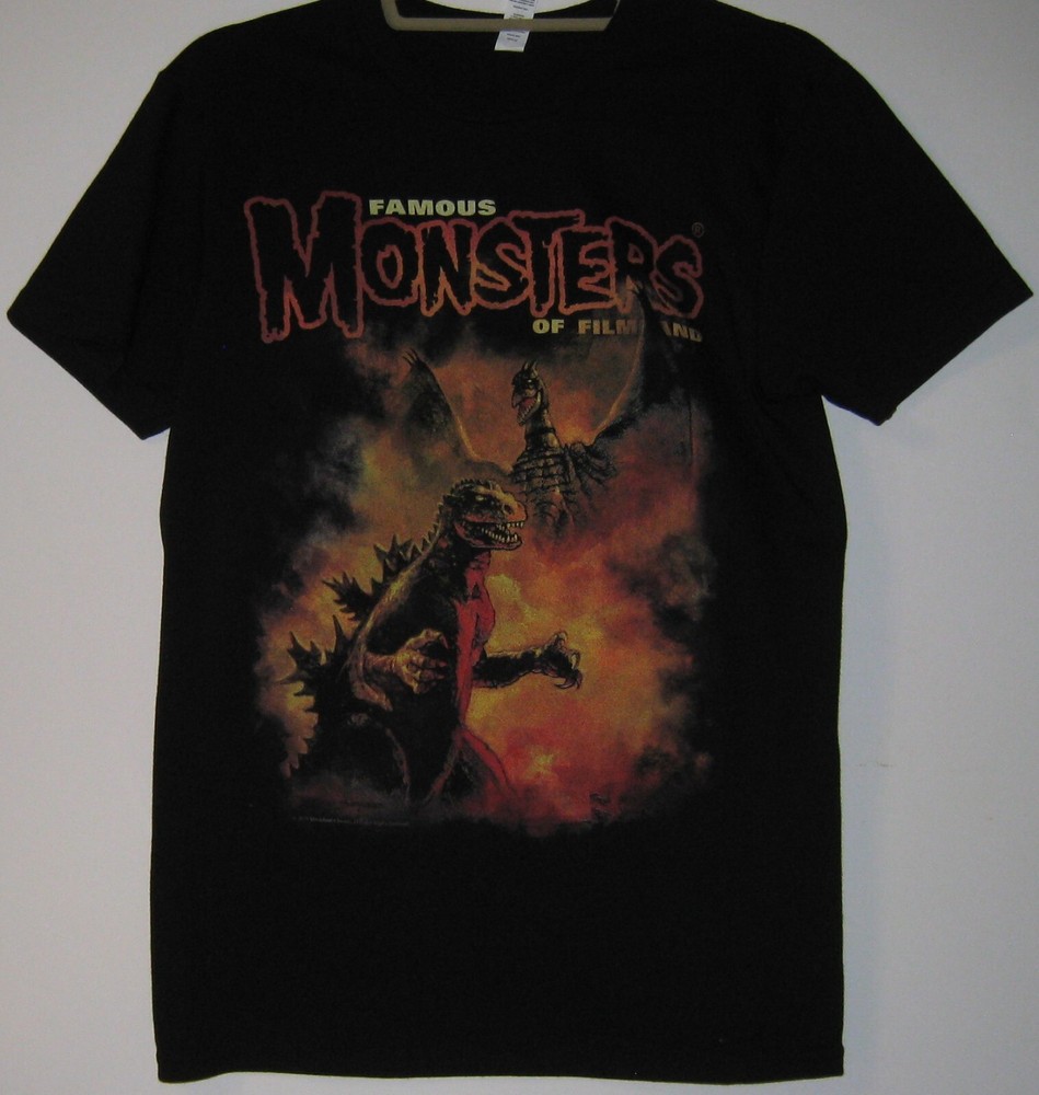 Famous Monsters of Filmland T-Shirt Godzilla vs Rodan Brand New 100% Cotton Pre-Shrunk Size MEDIUM...