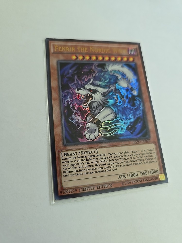This Fenrir the Nordic Wolf card is a must-have for collectors and duelists alike! The artwork is stunning, and the limited-edition LC05-EN002 stamp makes it extra special. The seller shipped it fast and packed it securely—definitely worth adding to your deck or display. Highly recommended for Yu-Gi-Oh! fans!