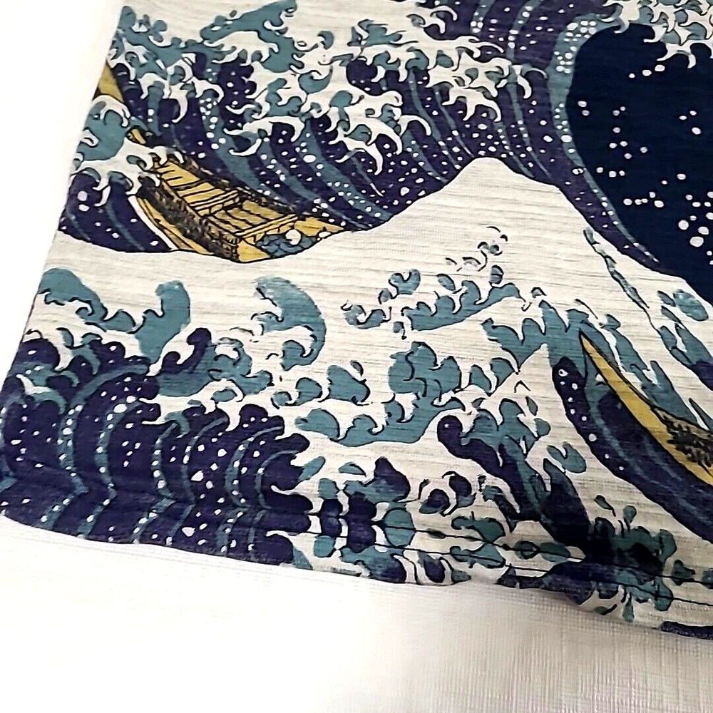 Absolutely love this shirt! The print is vibrant and feels like part of the fabric, not just slapped on. The blue color is rich and the Hokusai-inspired design is a creative twist on a classic monster. Perfect fit and super comfortable.